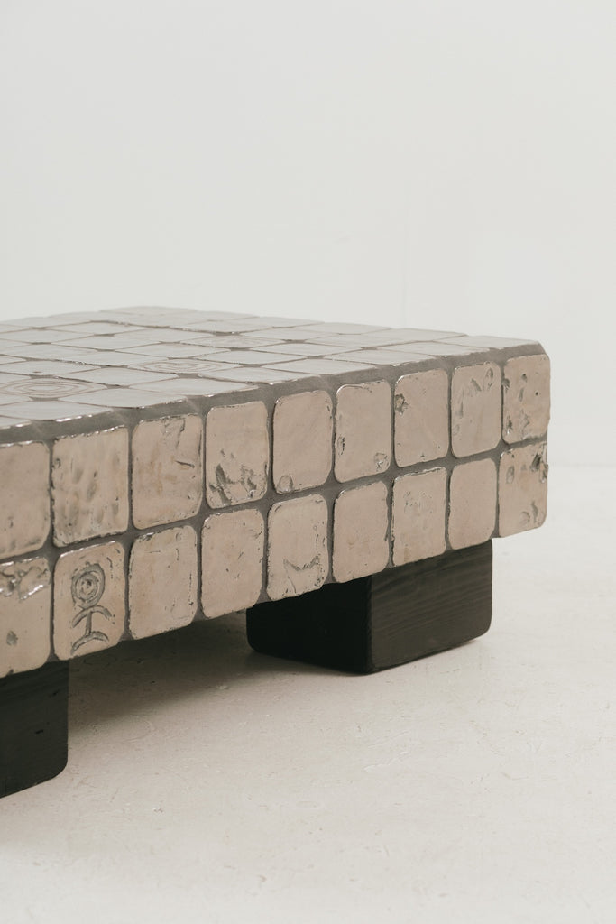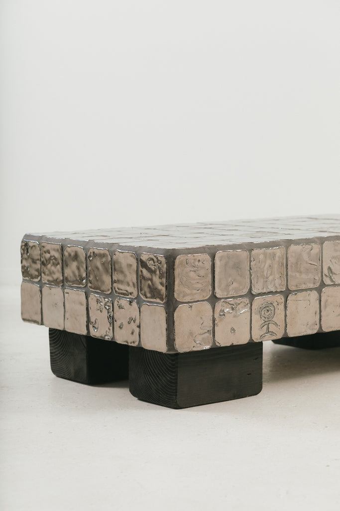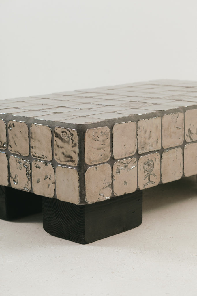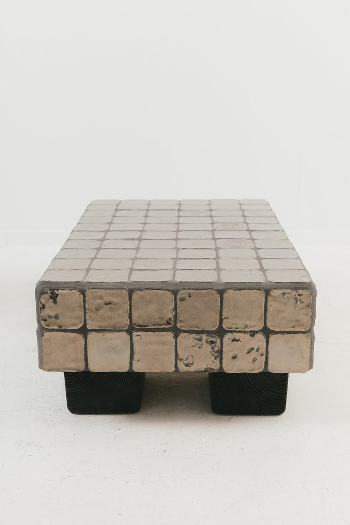 Clay, cement board, reclaimed wood.