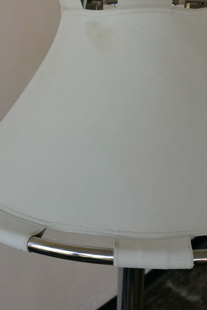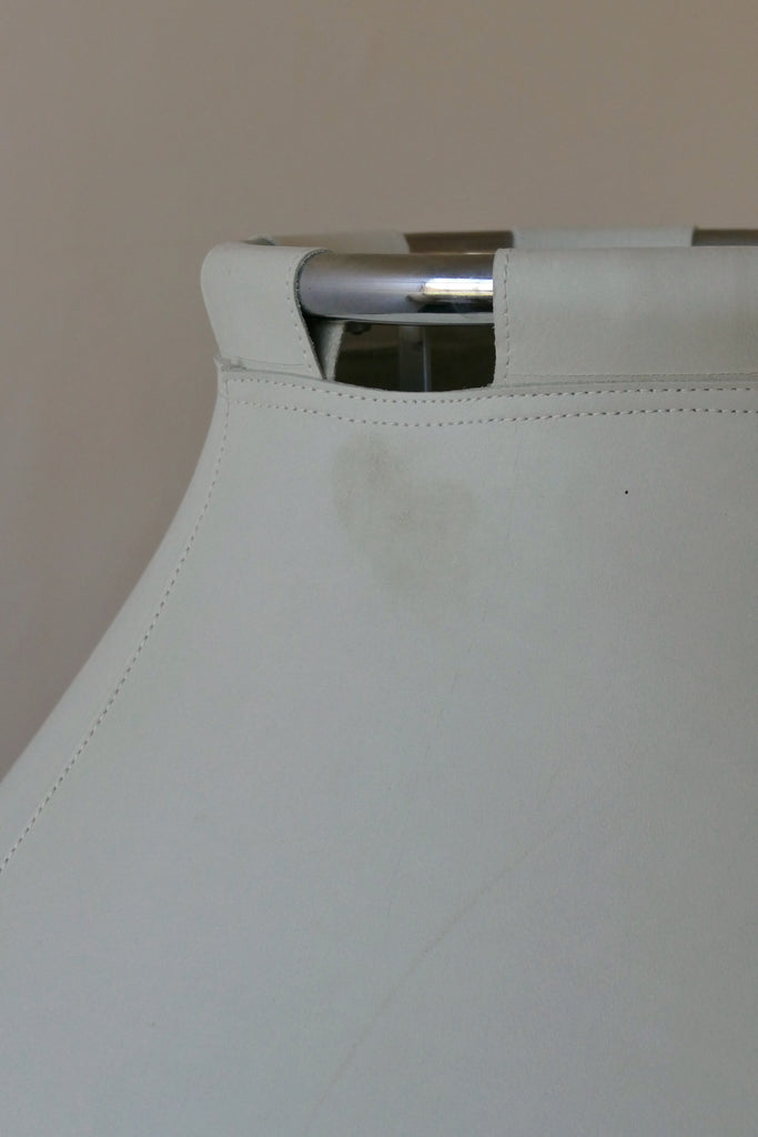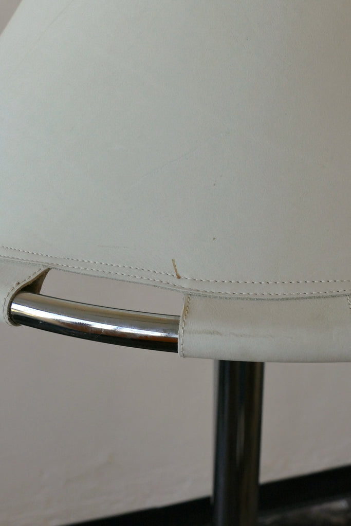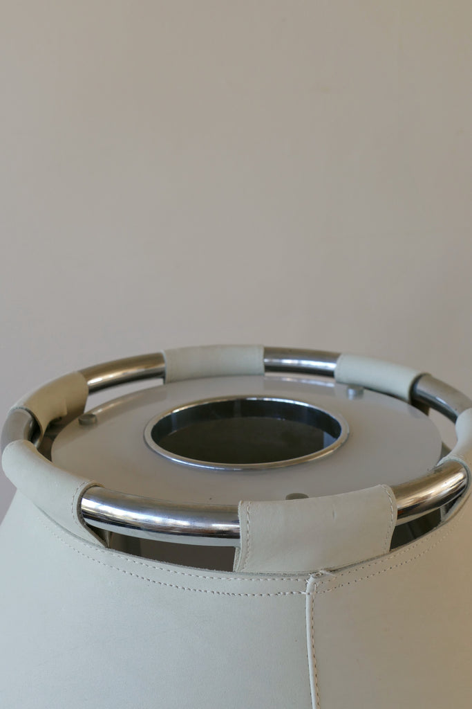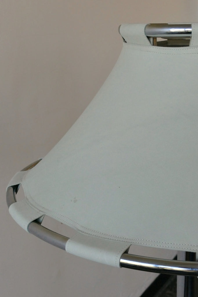 Phenomenal "Anna" floor lamp by Anna Ehrner for Ateljé Lyktan, Sweden, circa 1970s. Chrome body with an off white/cream leather shade and visible topstitching. Overall very good vintage condition. The leather has one area of light staining and a few light marks. All shown in images. Interior plastic diffuser. An all time favorite piece.