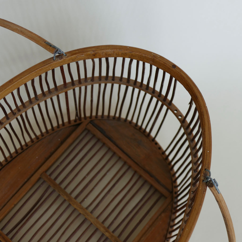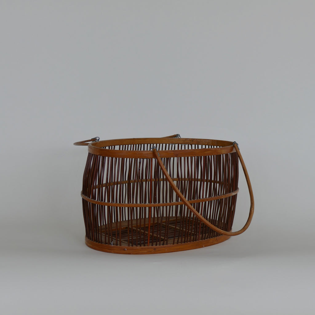 Lovely sculptural vintage basket with handles. Some broken pieces as shown;functional but delicate in nature.