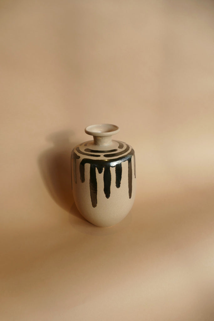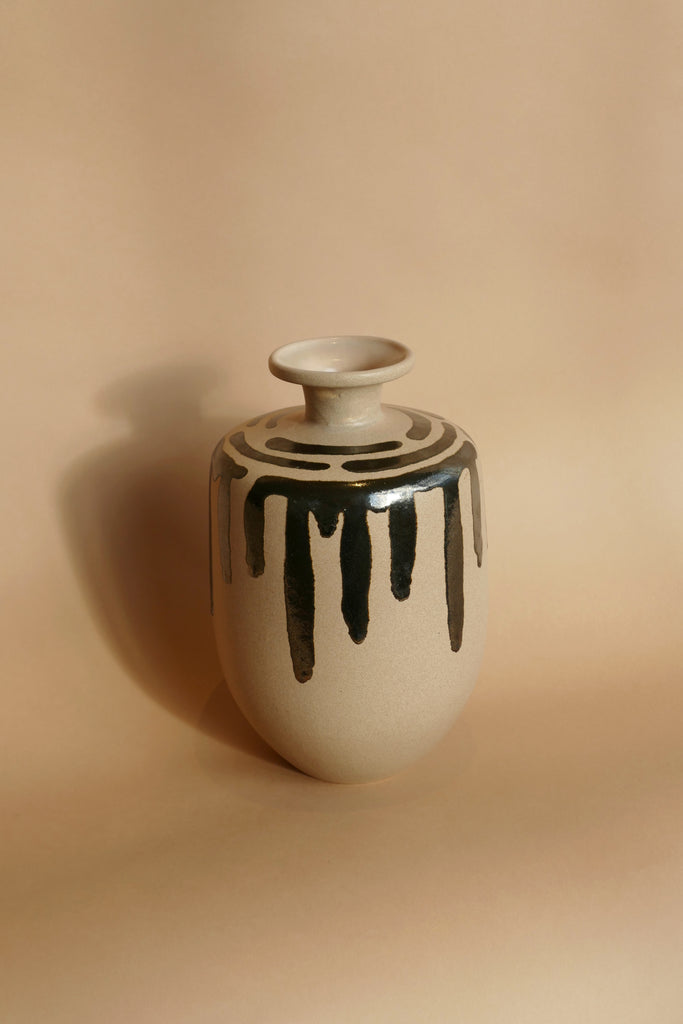 Vintage beige-gray Haeger Pottery vase with a high gloss drippy gray glaze finish. Excellent condition.