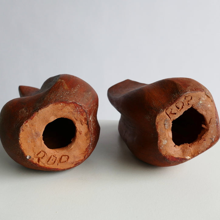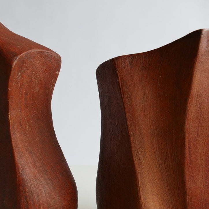 "Bones V," by Ruth Pumphrey. Pair of ceramic biomorphic sculptures by Washington artist Ruth Pumphrey. Painted in a terra cotta tone. A beautiful pairing. Excellent condition.
