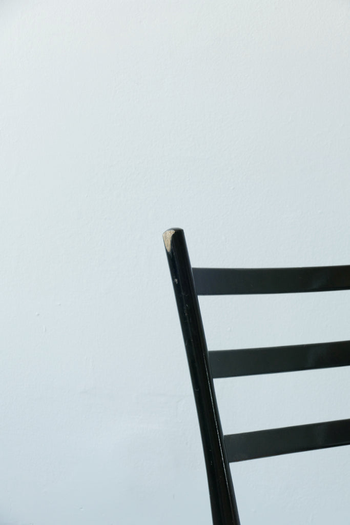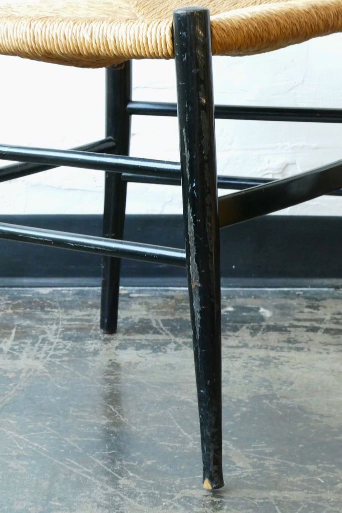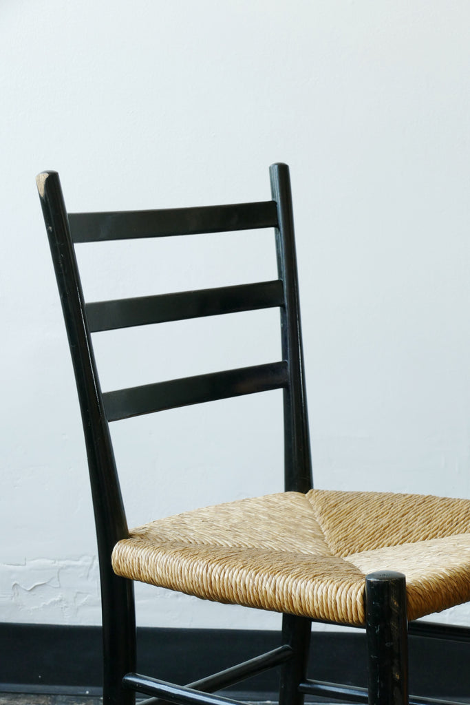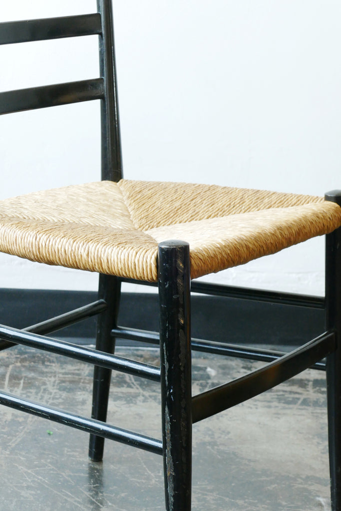 Single mid century black lacquered dining chair with rush seat by Otto Gerdau, Italy.