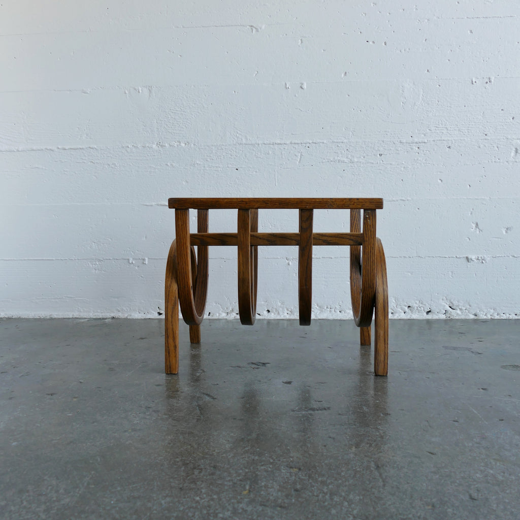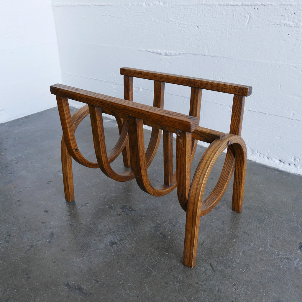 Vintage oak bent wood magazine stand. Beautiful lines, interesting and functional.