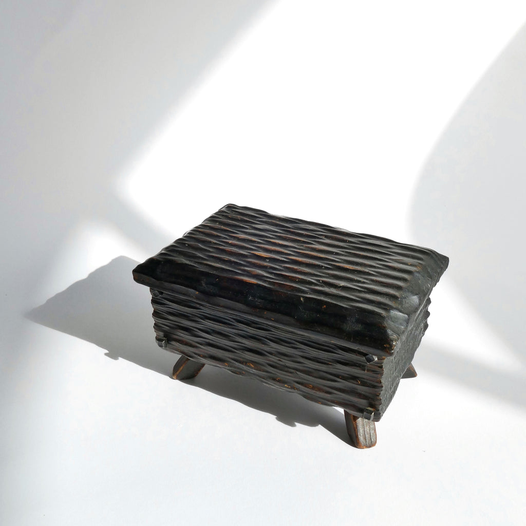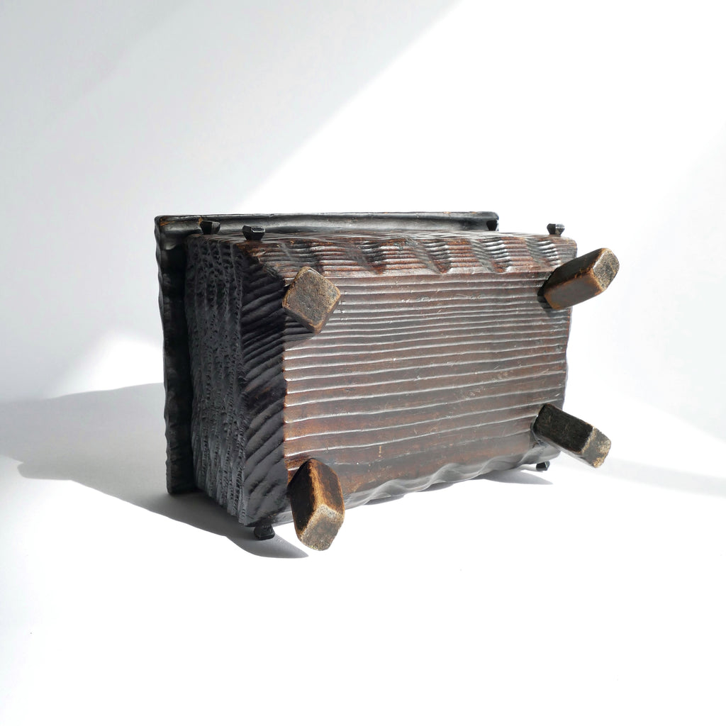 Hand-carved brutalist keepsake box. Footed, with nail-head details.