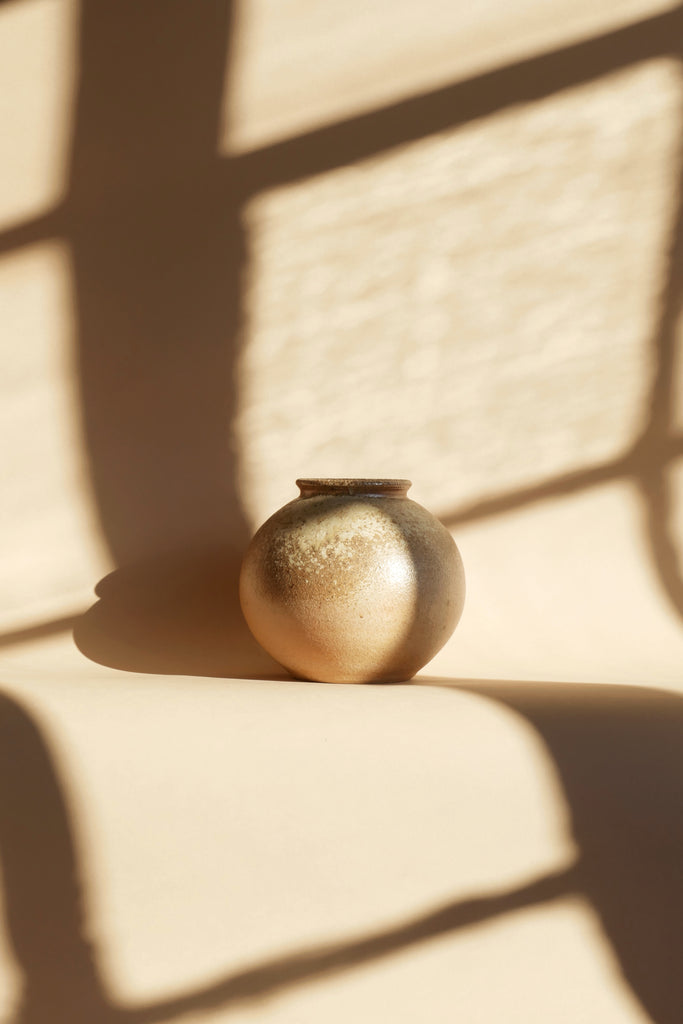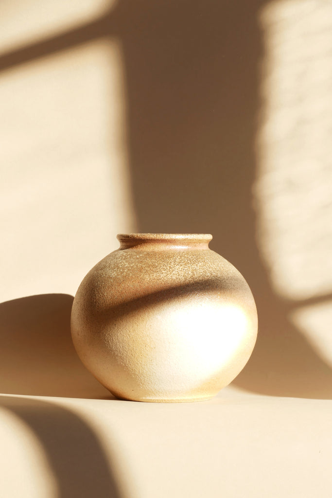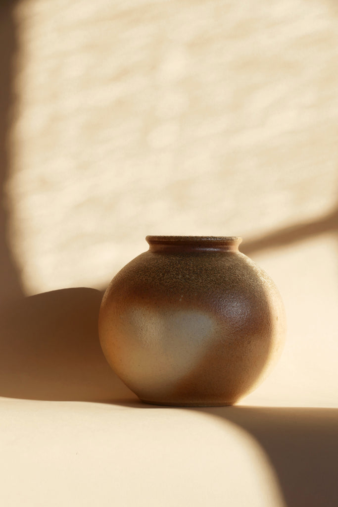 Gradient neutrals raku pot made by California ceramicists Larry & Terry Brown. Excellent condition.