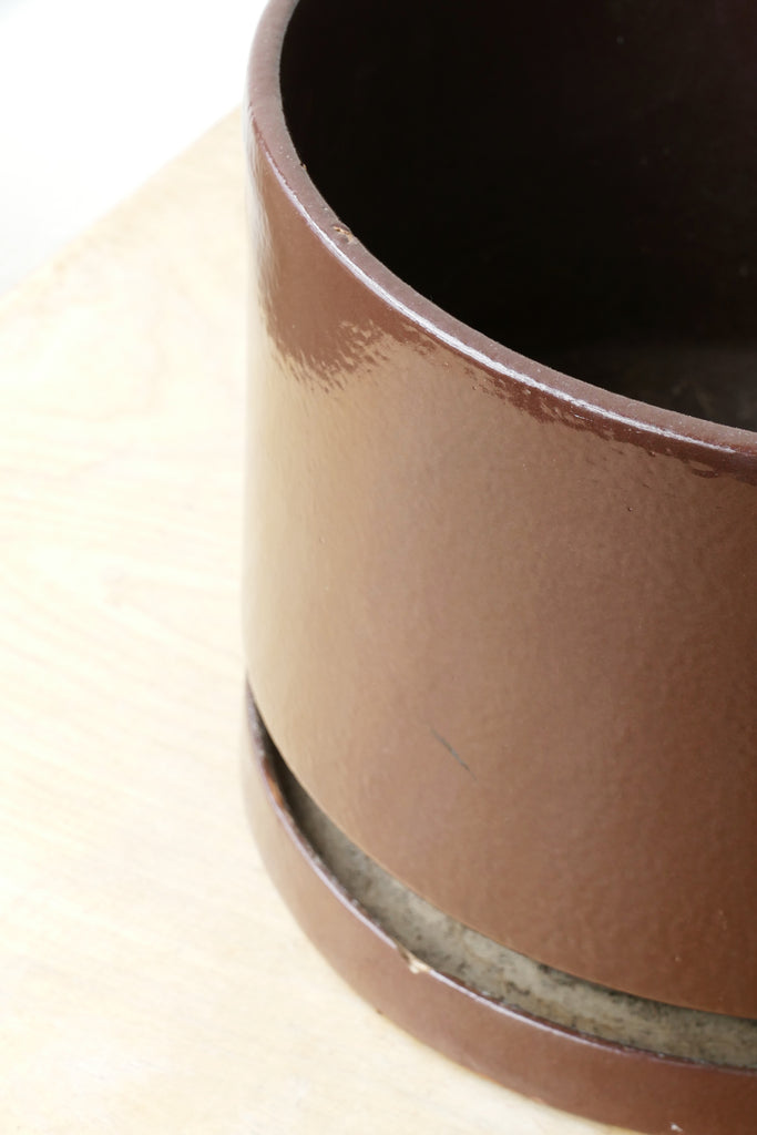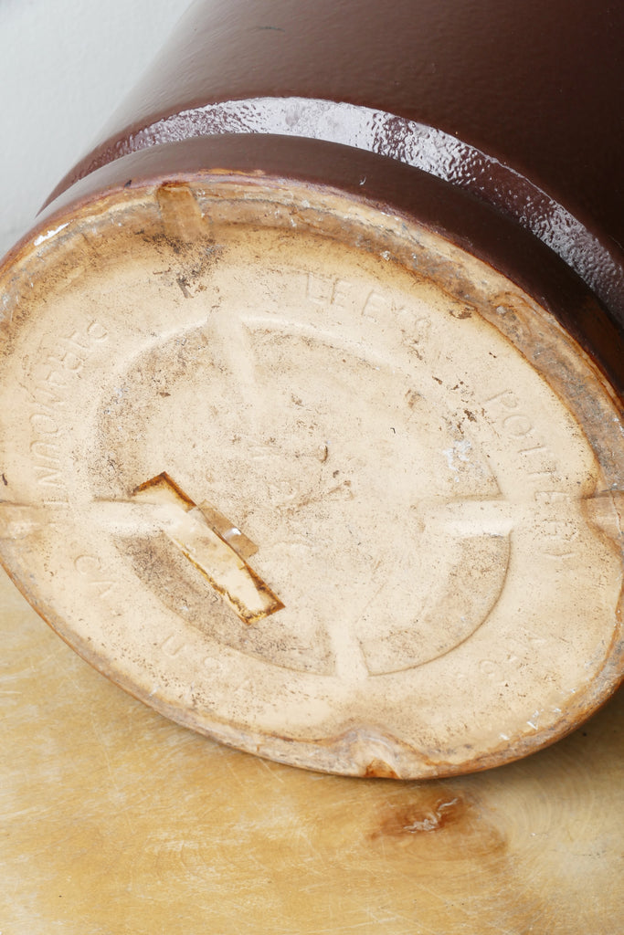 Vintage 1960s Lee's Pottery Mfg. architectural planter with attached drain dish. Small chip on edge of planter and "matching" chip on edge of dish. Otherwise very good vintage condition. Made in Paramount, CA.