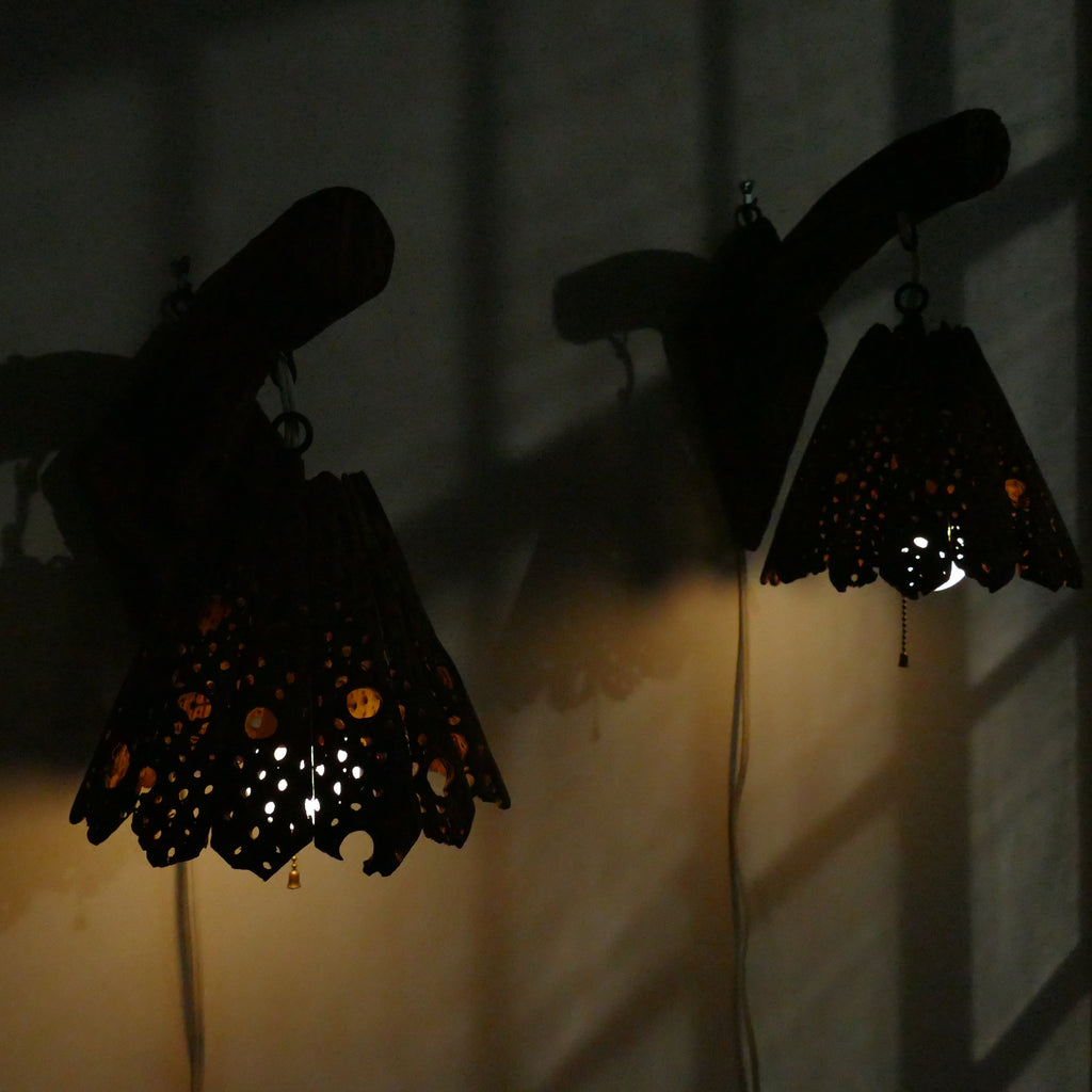 Pair of incredible handmade vintage wall sconces made from cactus. Well-constructed, sturdy and in excellent condition. The shadows they cast are reason enough! Plug-in. Sold as a pair.