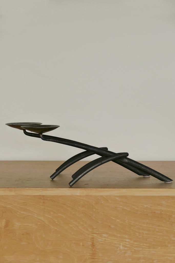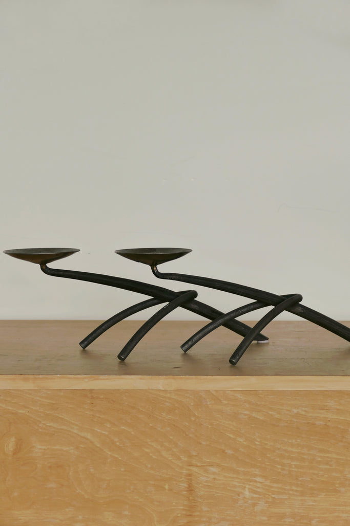 Set of two designer mid century pillar candleholders. Excellent vintage condition.