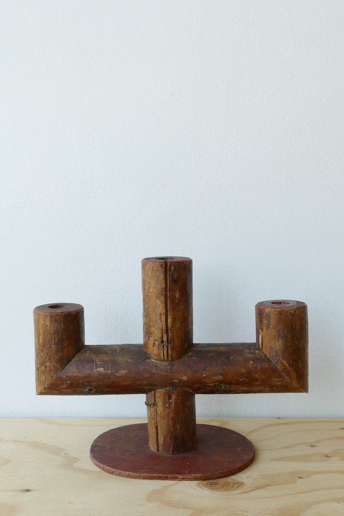 Sizable handcrafted wood candelabra with space for three tapers. Signed and dated 1935, Issaquah, WA :)