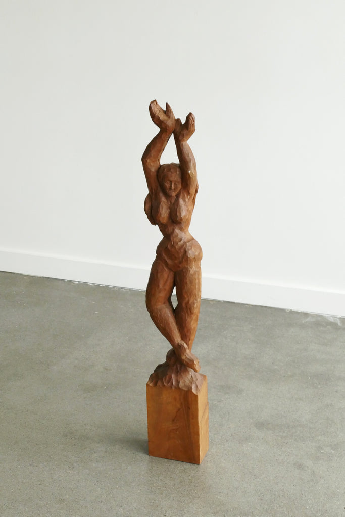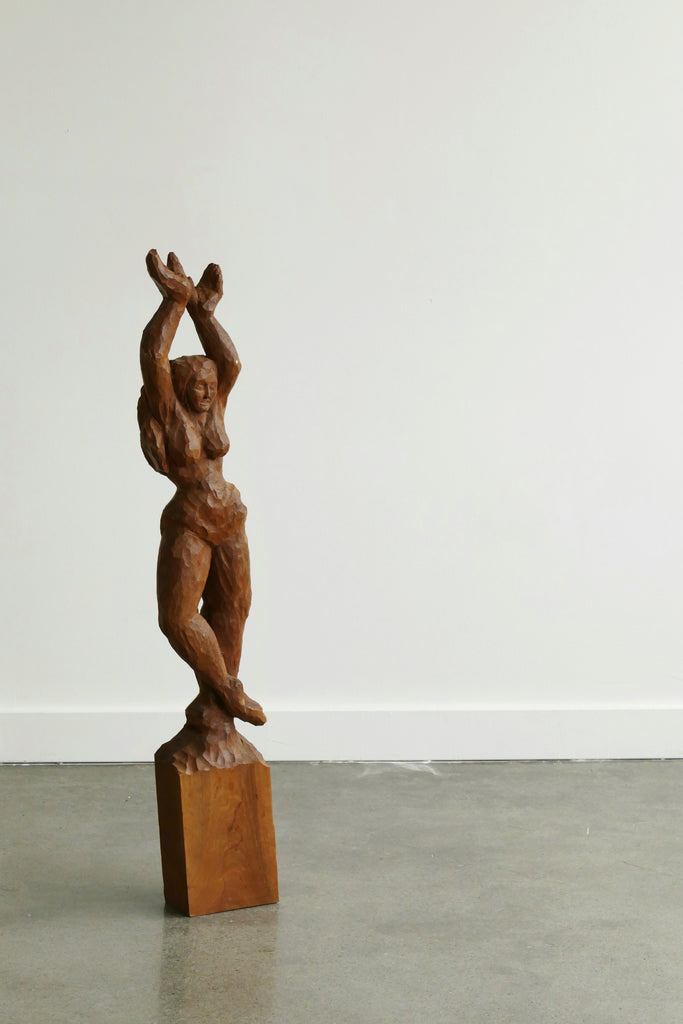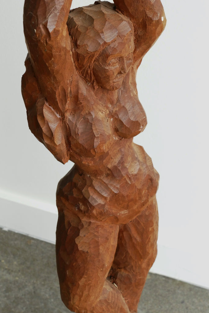 Large, oversized hand carved female nude. Love the rudimentary/folk-art feeling to this beautiful piece. No overt flaws or chips.