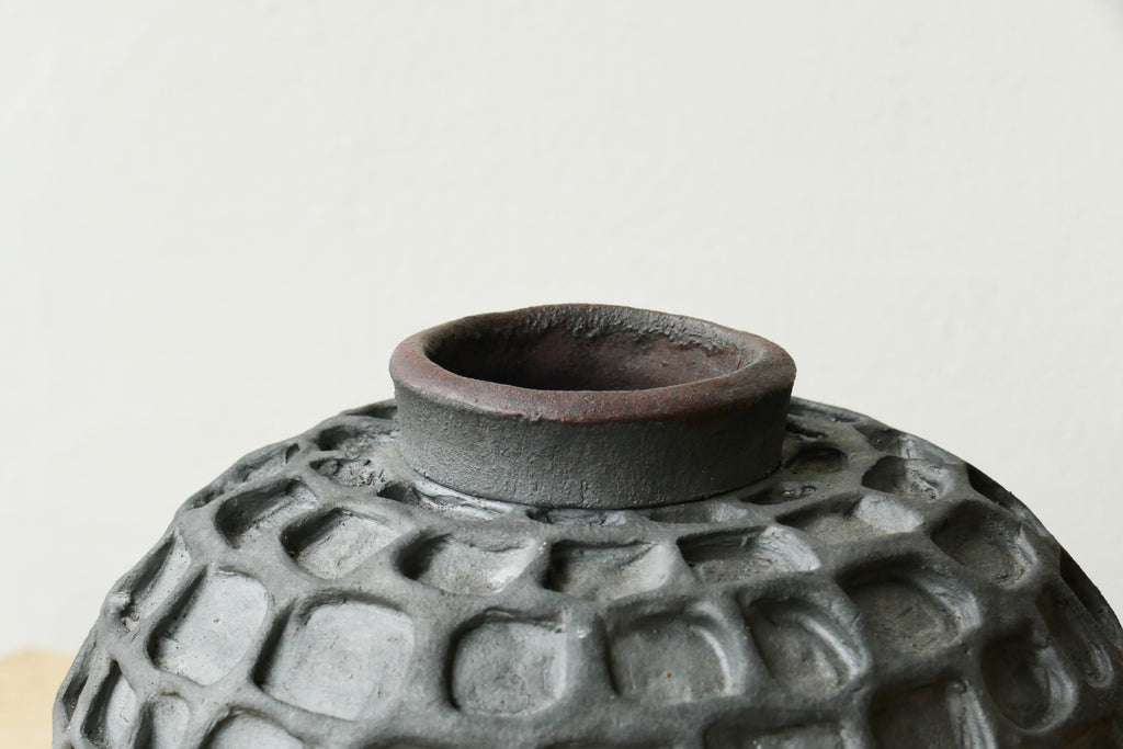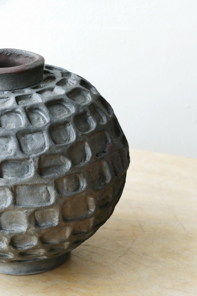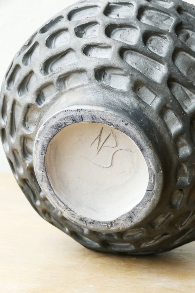 Textural hand built contemporary black matte vase. Great form- doesn't hold water!
