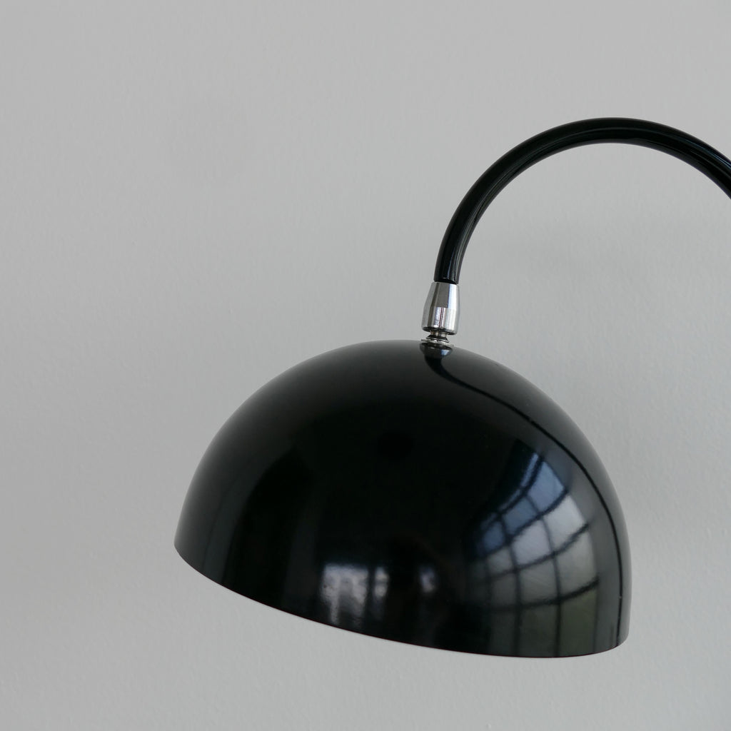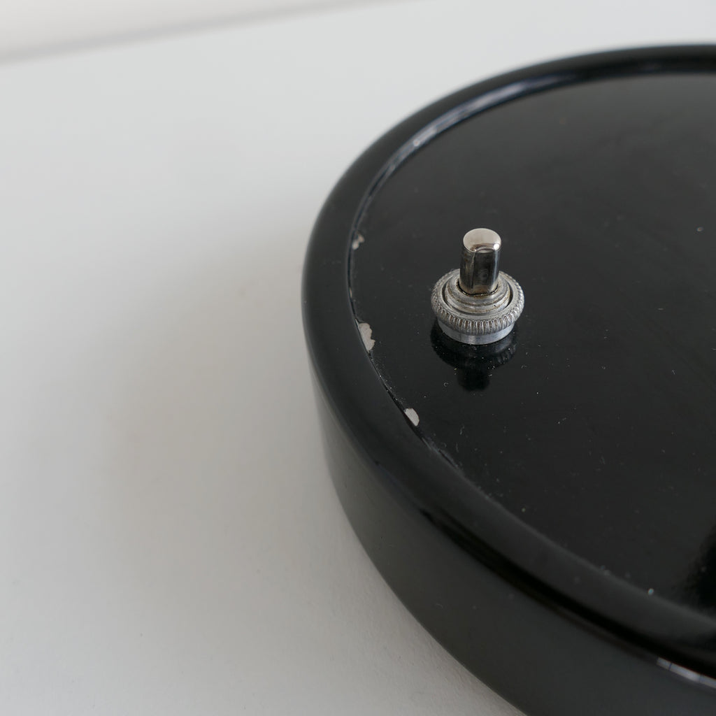 Very cool and sleek black table or desk lamp. Minimalist lines and a playful shade! Some chipped paint on base as shown. Overall very good vintage condition.