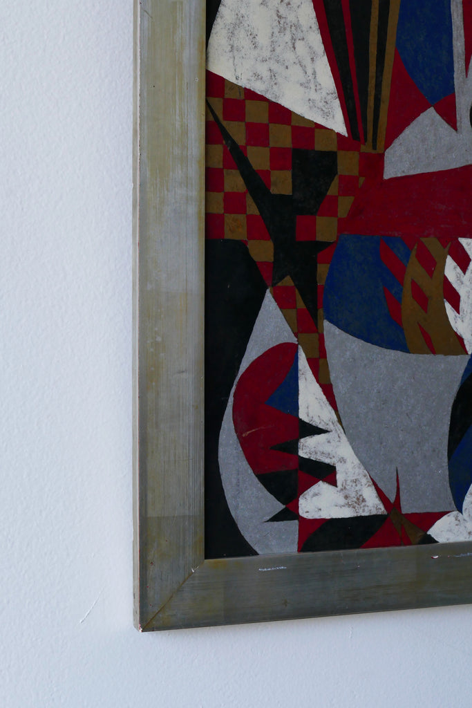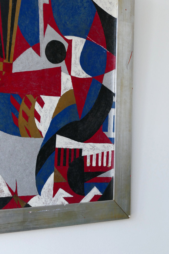 Vibrant hard edge on board in a silver/bronze frame, circa 1960s-1970s. Excellent condition. Unsigned.