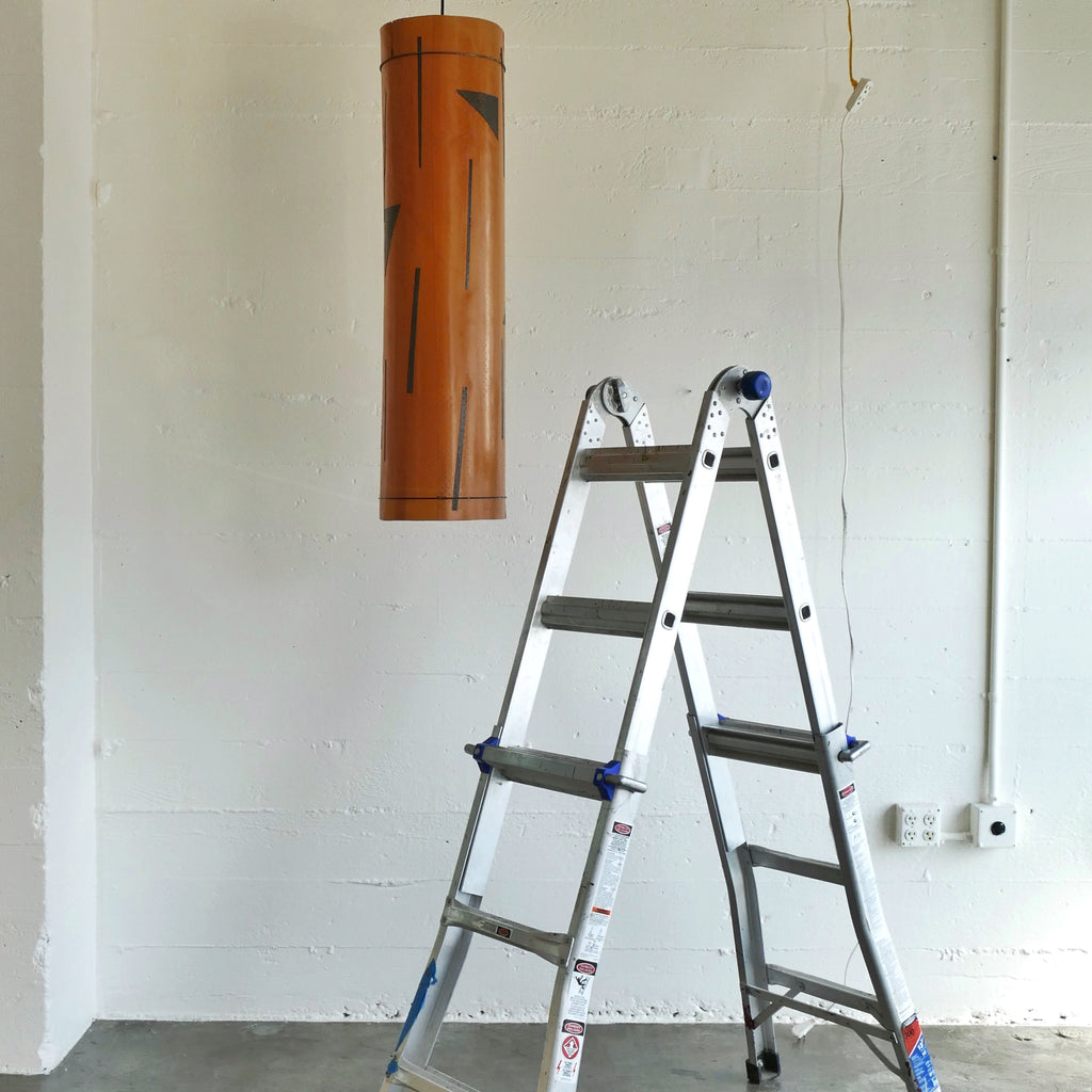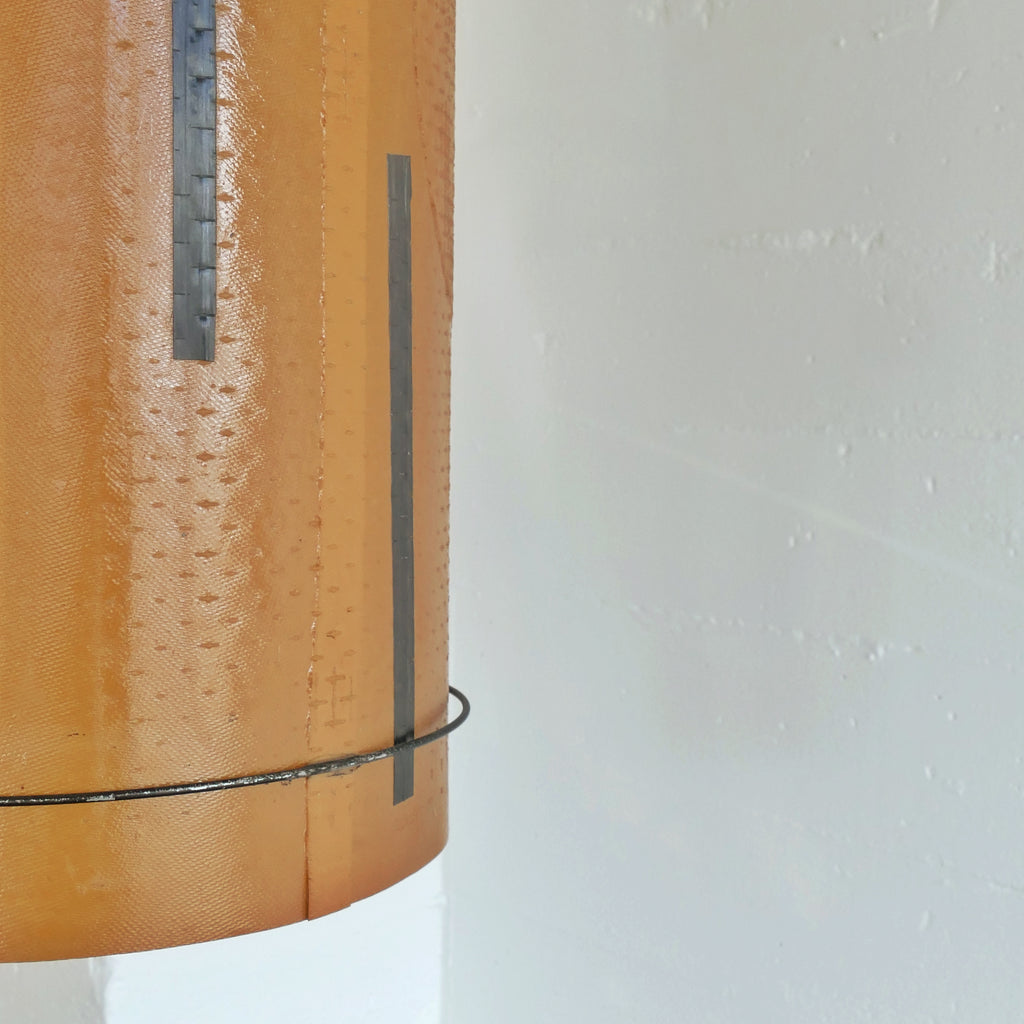 One-of-a-kind vintage fiberglass pendant with playful shapes all-over. New hardware and wiring (hardwired). Casts a warm glow :)