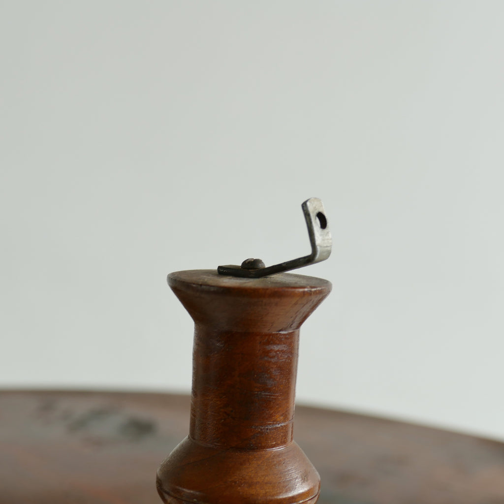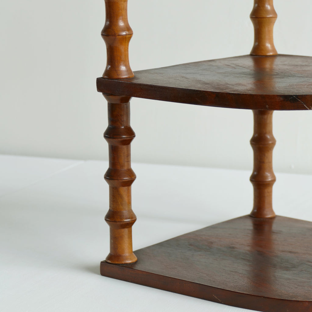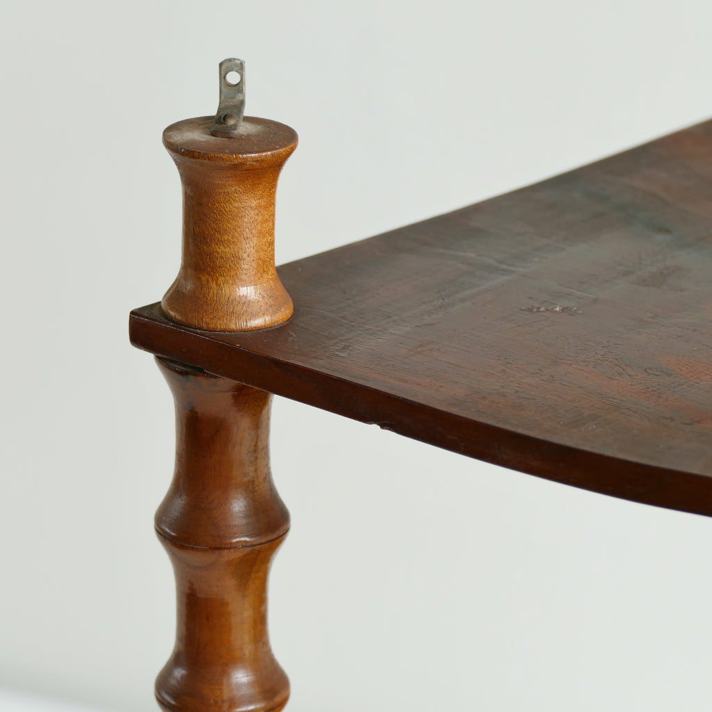 Vintage corner bobbin shelf with hardware for hanging. Functional and sculptural. Excellent condition.