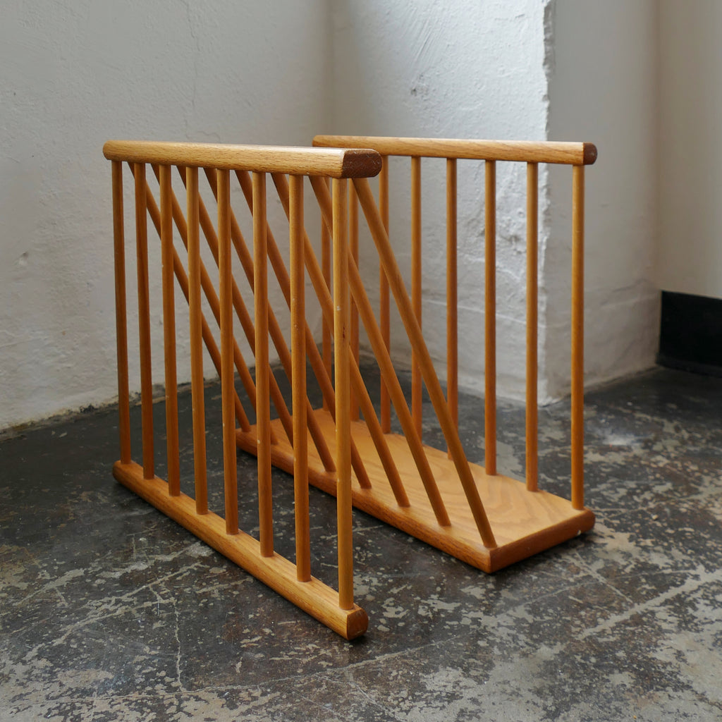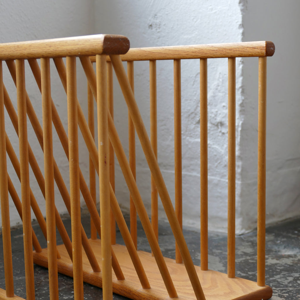 Vintage mid century spindle magazine rack. Blonde wood, minimal and sleek design. Excellent condition.