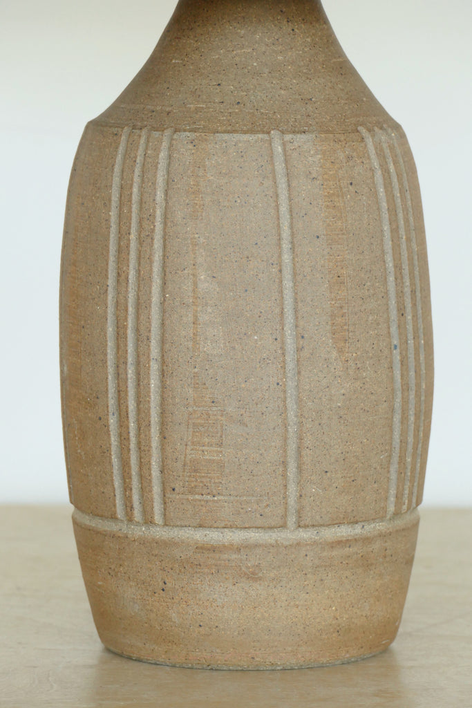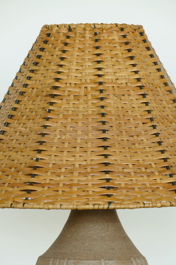 Very lovely handmade ceramic lamp with wicker shade. Excellent condition.