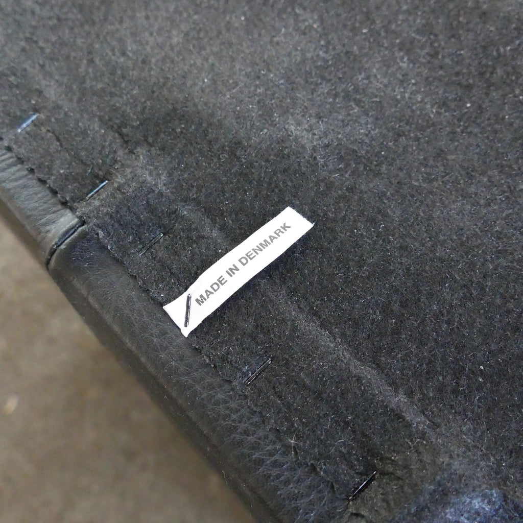 Black patchwork leather ottoman made in Denmark. Excellent condition. We like this for a foot rest, seat, or for book stacks.