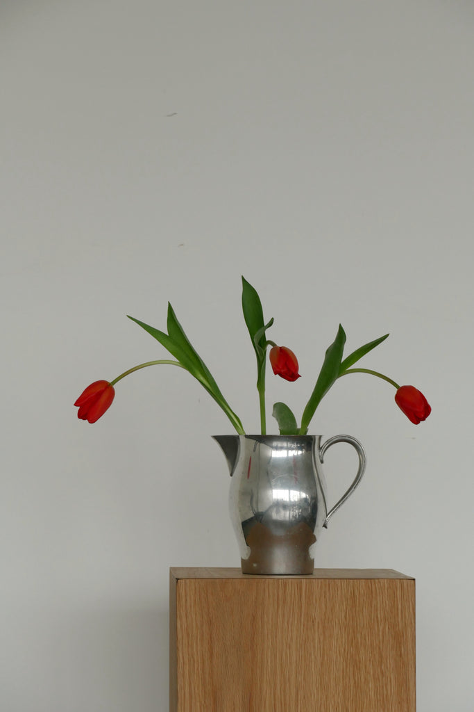 Elevate your mantel or table settings with this simple vintage pewter pitcher made in England. Age-appropriate wear.