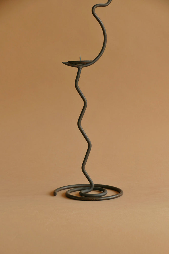 Single post modern squiggly candlestick. Iron, excellent condition.