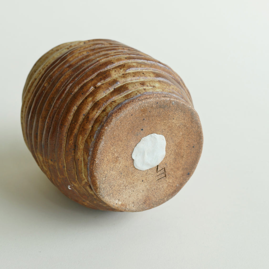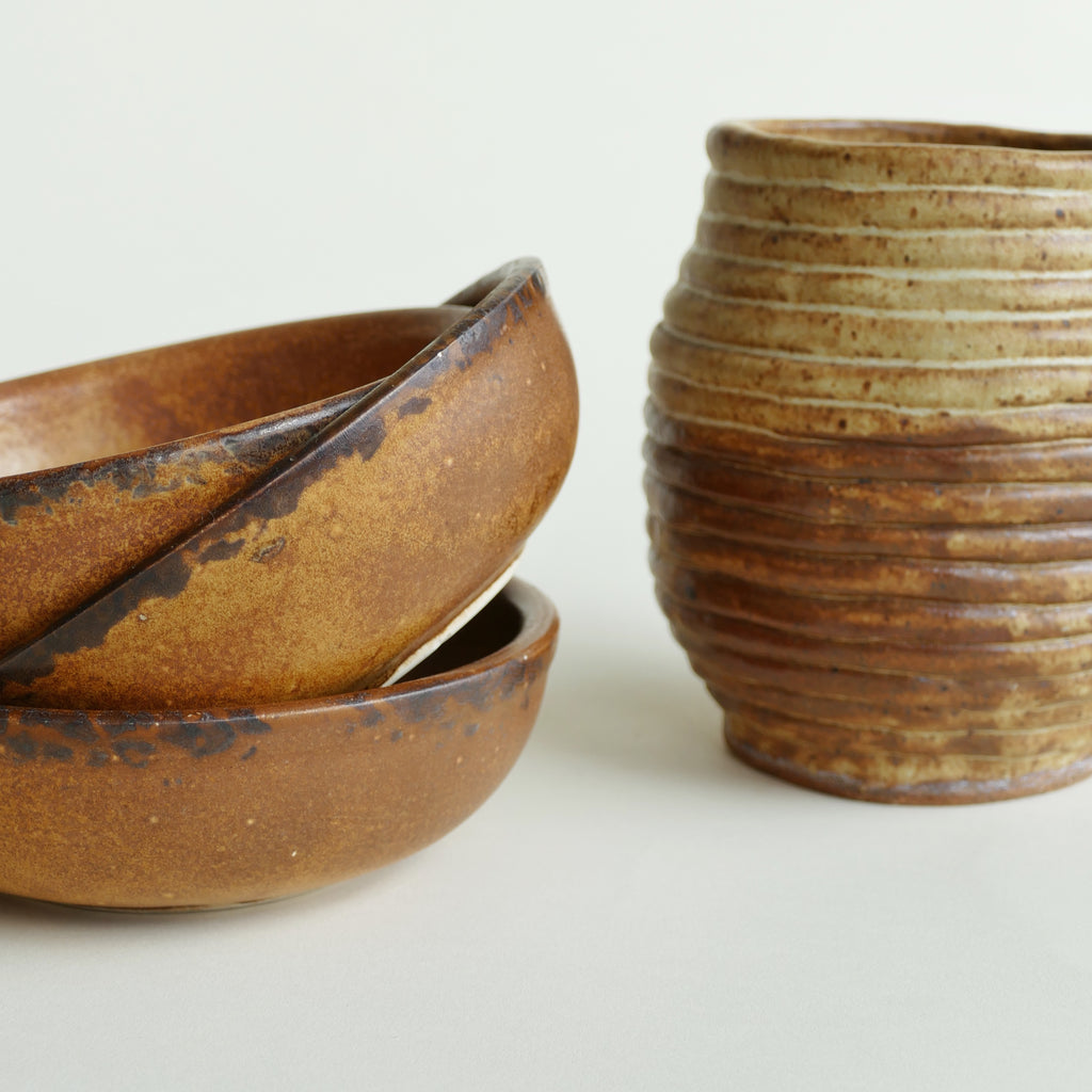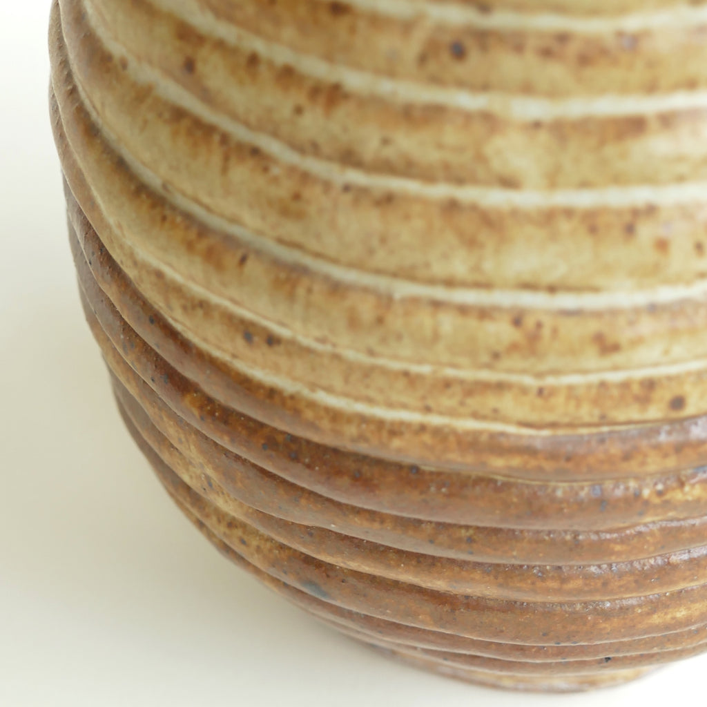 Handmade coil pot. Nice taupey color variation throughout; a great addition to a growing collection of neutral pottery.