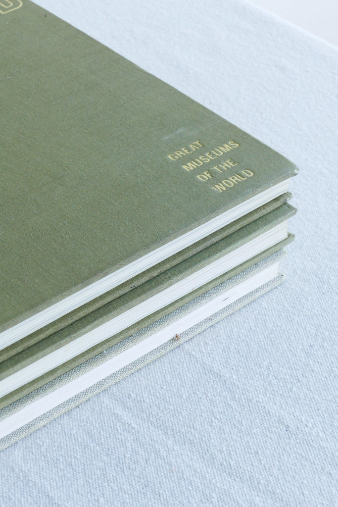 Lovely set of three fabric-bound vintage art books. Perfect for styling and enjoying. Included in this set: "Great Museums of the World,"(Prado and Brera) and "The Human Figure". Sold as a set of three.