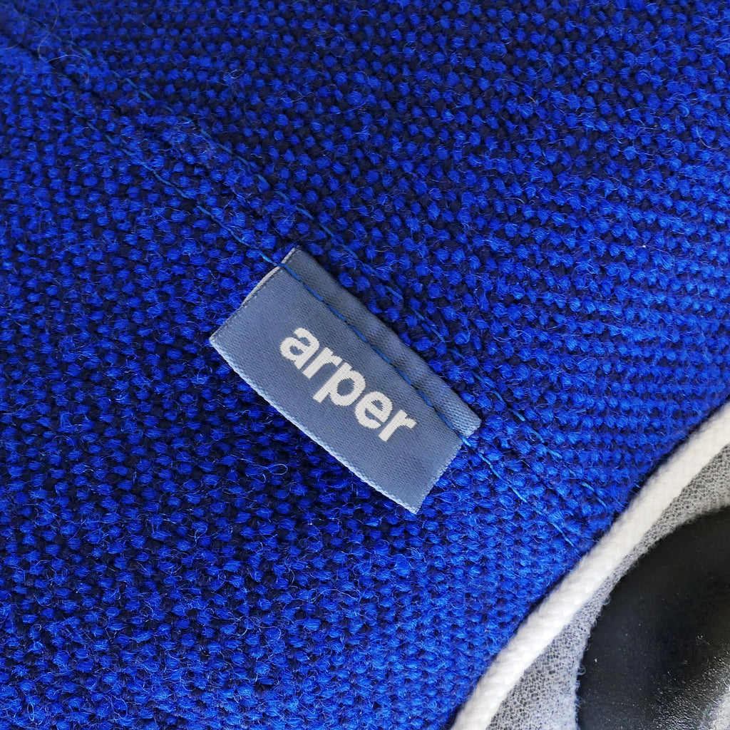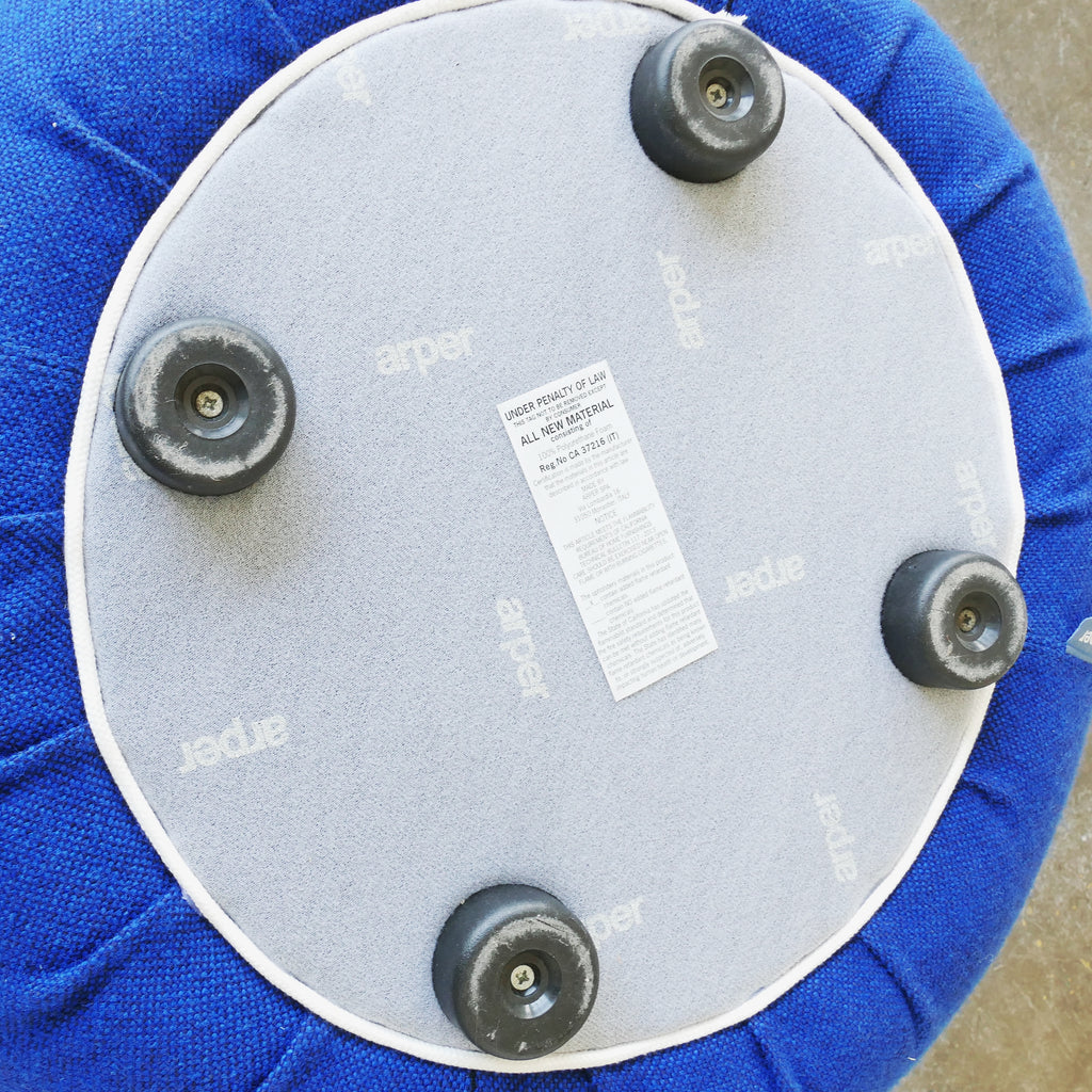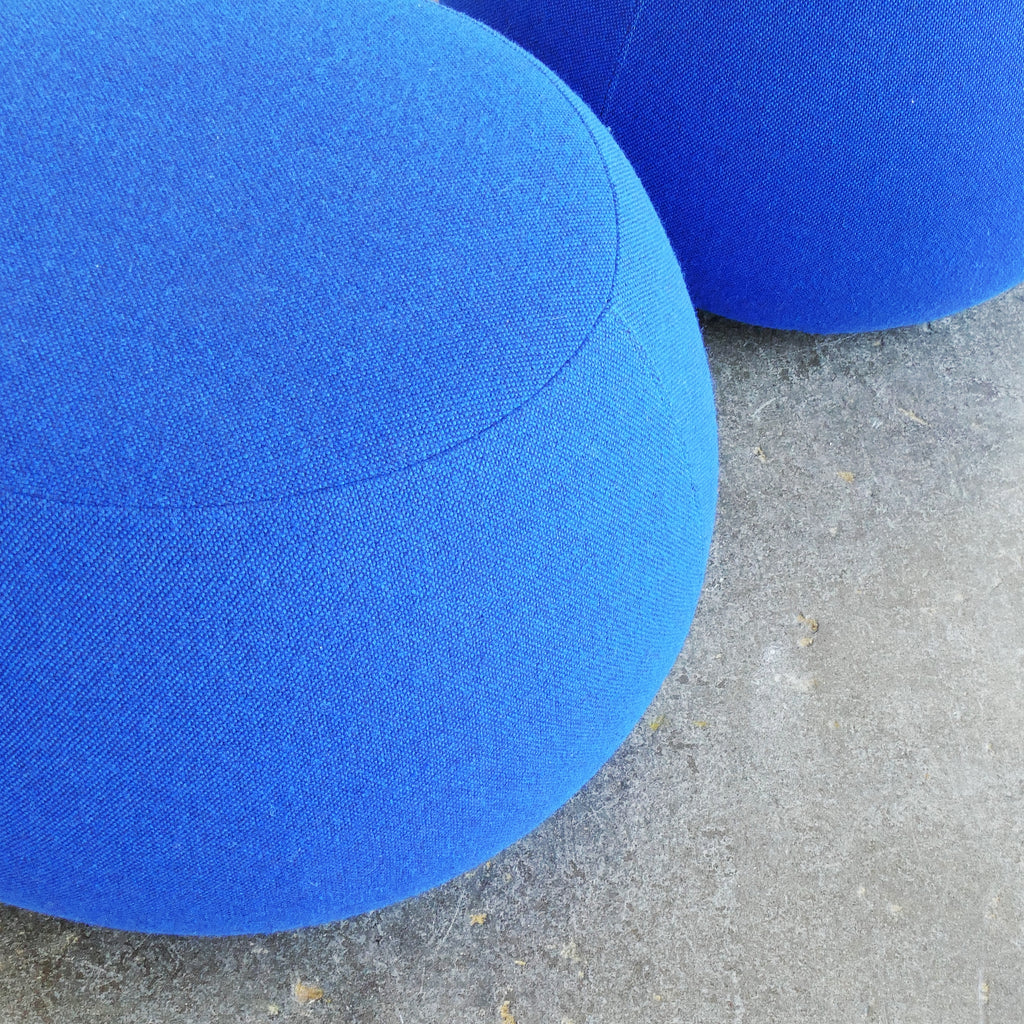 Blue wool ottomans made in Italy by Arper. Excellent condition. Perfect for adding style, comfort, and an extra seat to any room. Sold individually. (Two available).