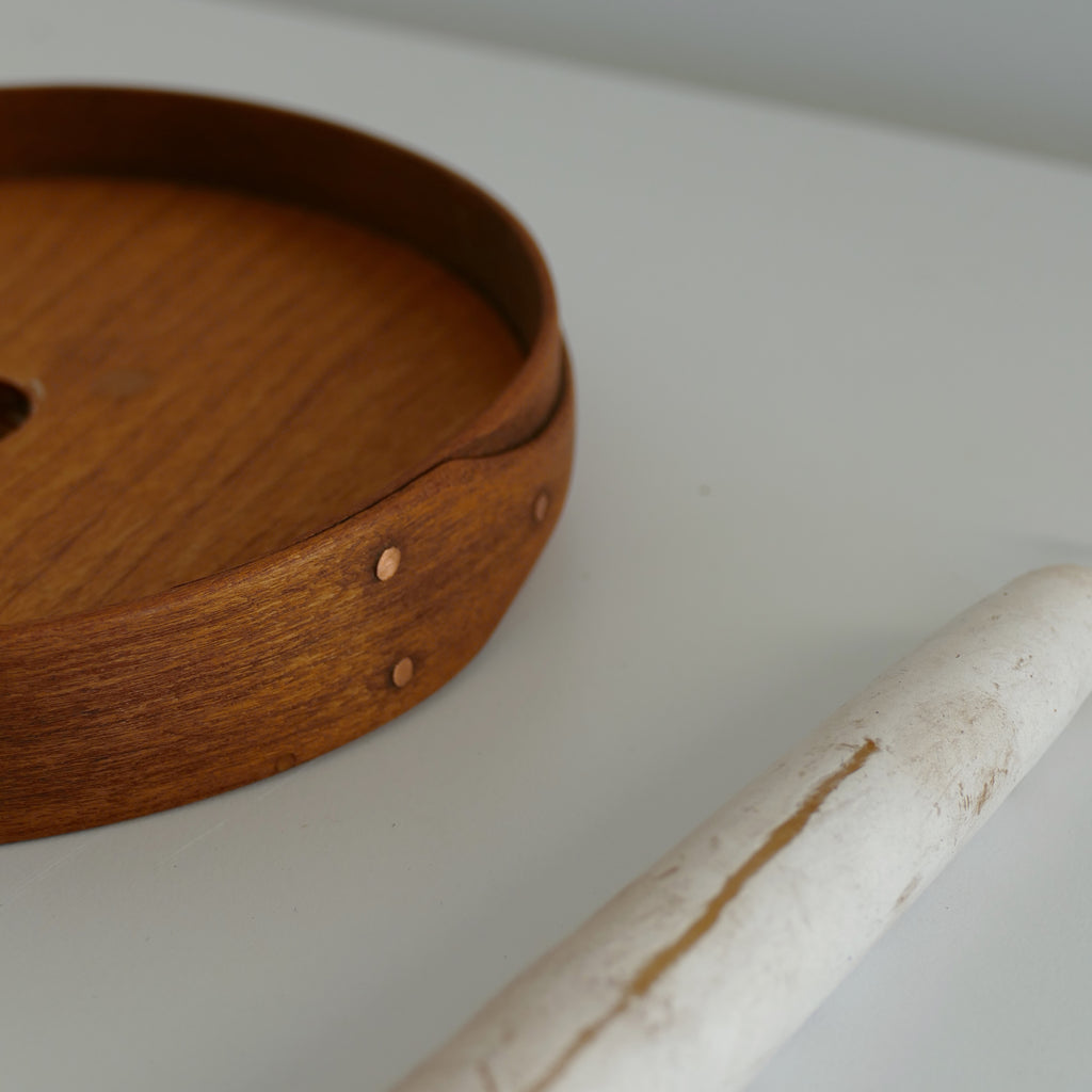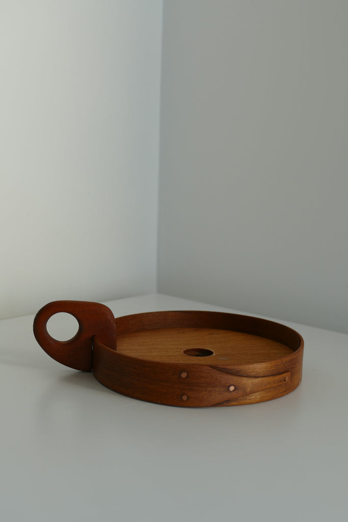 Single bentwood Shaker-style candlestick with handle. Excellent condition; minor marks on handle. Comes with single painted taper.