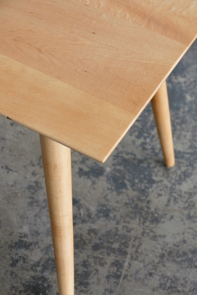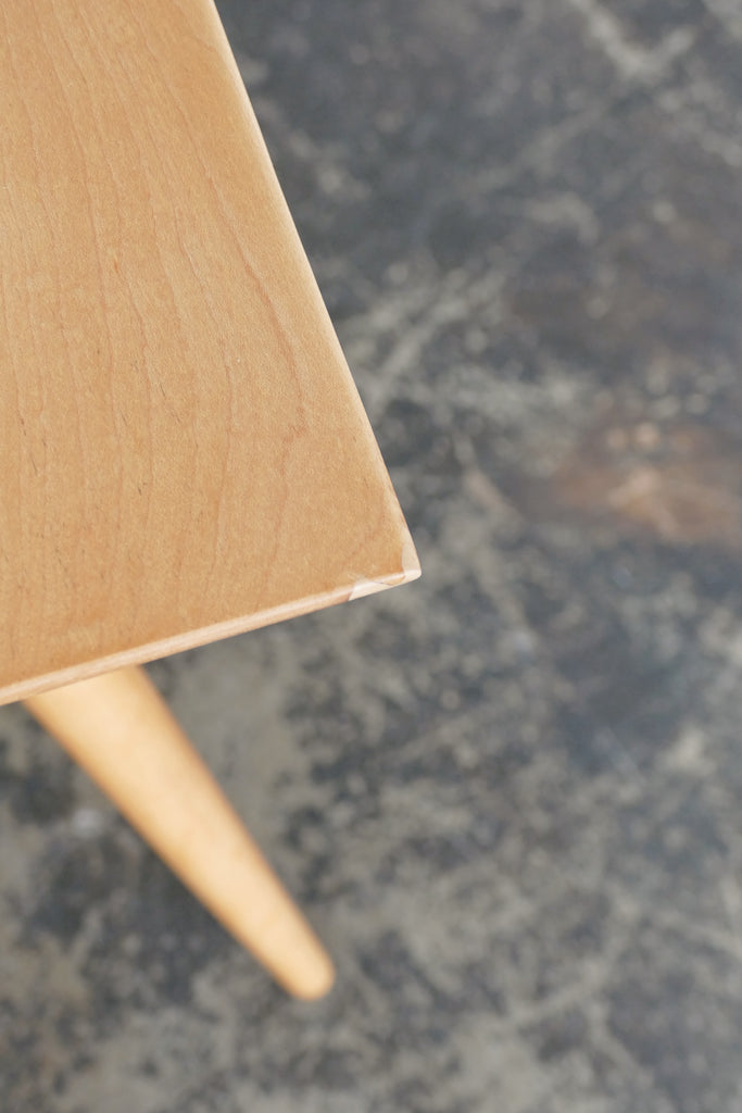 Bench 1540 by Paul McCobb, part of the Planner Group collection for Winchendon, circa 1950s-1960s. Freshly restored maple table with tapered screw on legs. Small repair to corner as shown. Retains original label. Please note, this was called a bench by McCobb but functions as a side table and cannot hold body weight.