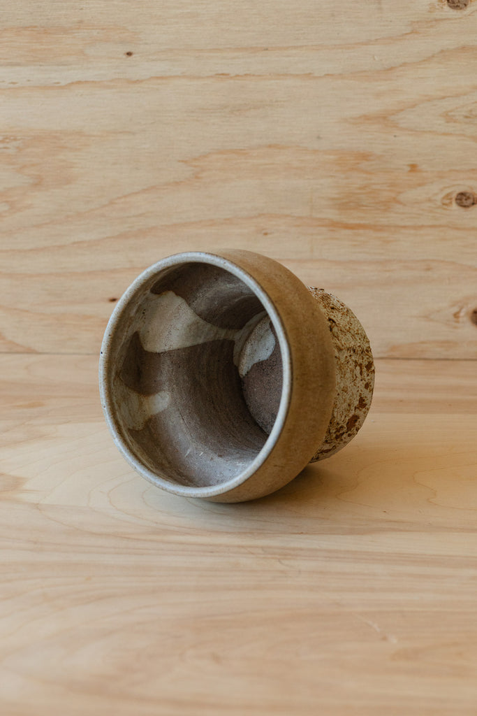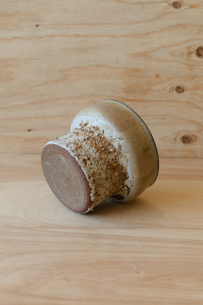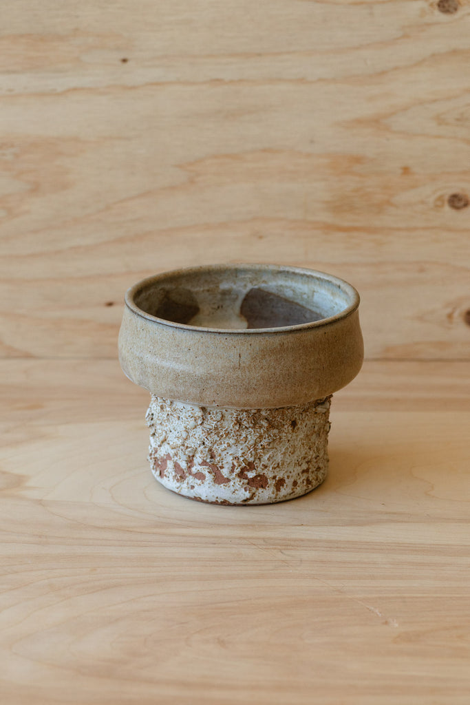 Great form to this squat vintage planter or wide mouthed vase. The texture on the best combined with the color of the glaze, makes this a new favorite addition to the studio.
