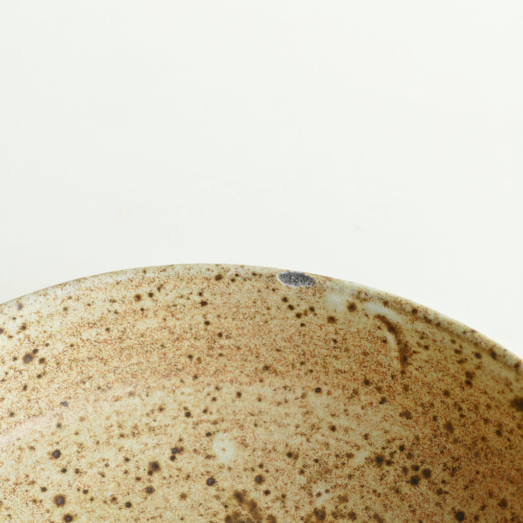 Single lovely studio ware bowl. Interesting texture on one edge where the glaze dormed during firing; nice color variation throughout. One chip in the glaze on the lip of the bowl.