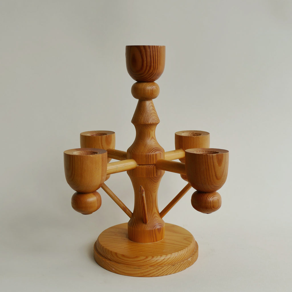 Charming pine Swedish style candlestick for five tapers. Excellent condition. No chips or cracks.