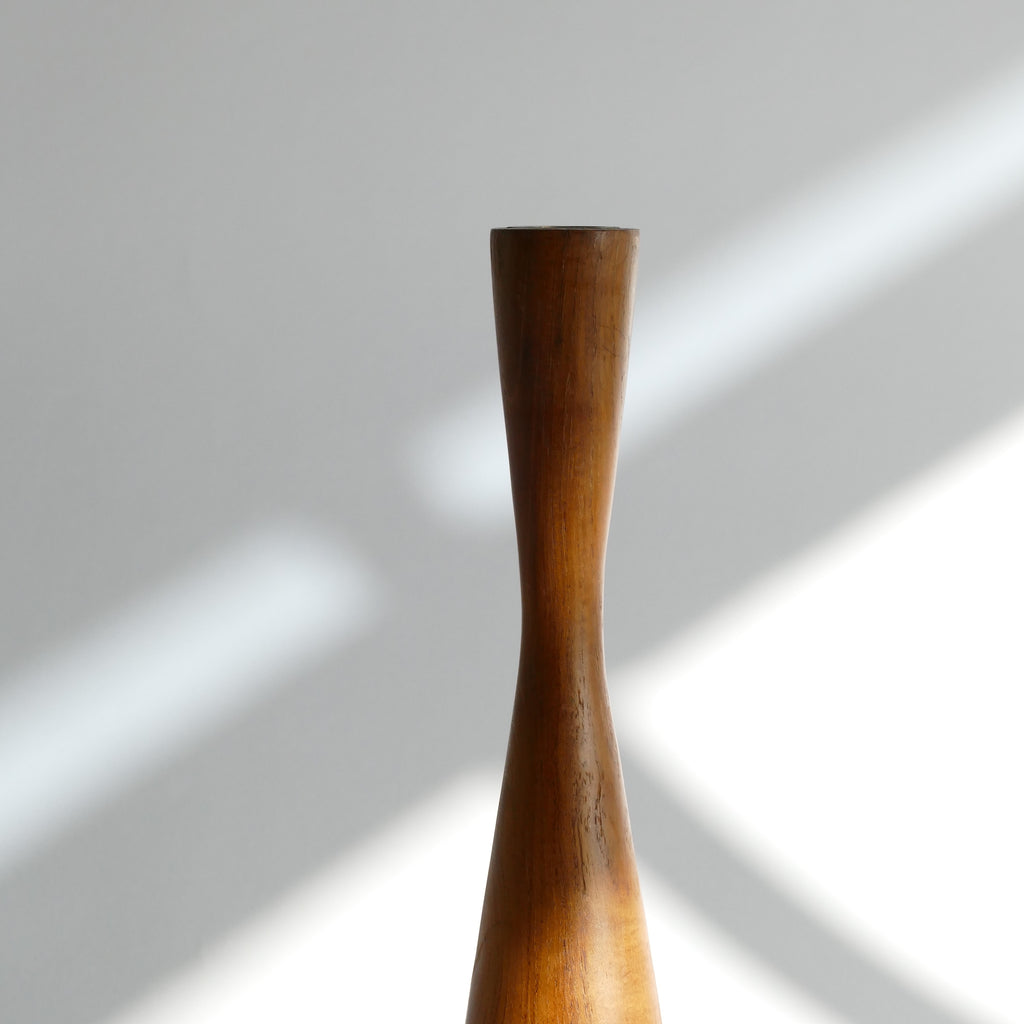 Single teak Swedish-style candlestick. Lovely next to the sink or on a small dining table, or pair with other orphaned candlesticks.