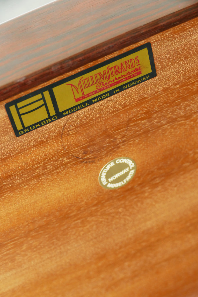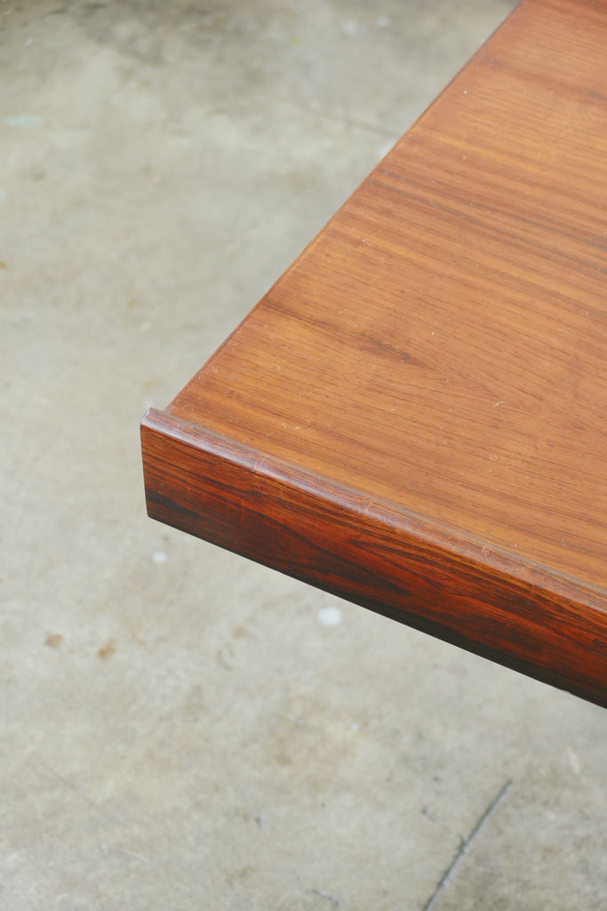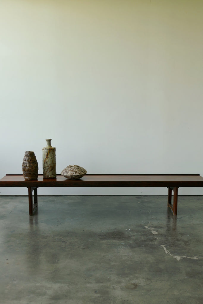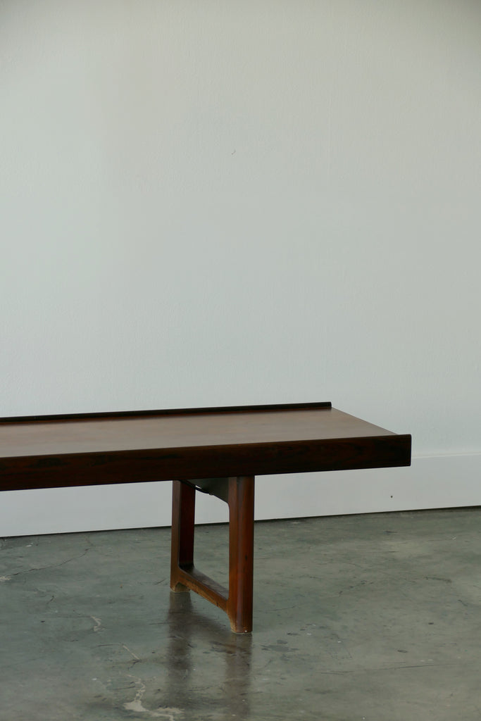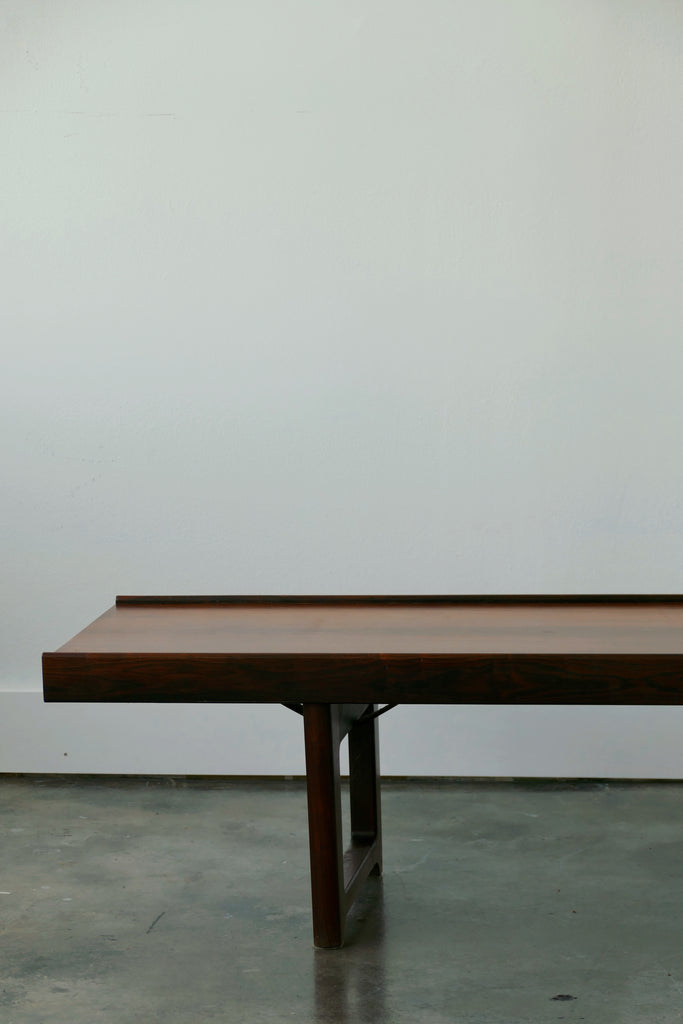 Extra long "Krobo" rosewood bench or coffee table by Torbjørn Afdal for Bruksbo Norway, circa 1960s. Beautiful construction featuring metal straps on the underside.