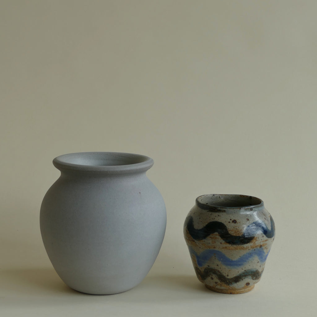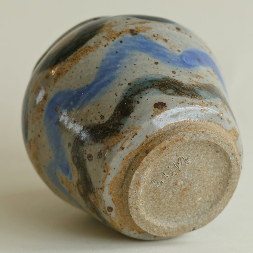 Petite vintage vase with shades of blue squiggles. Simple & sweet.
