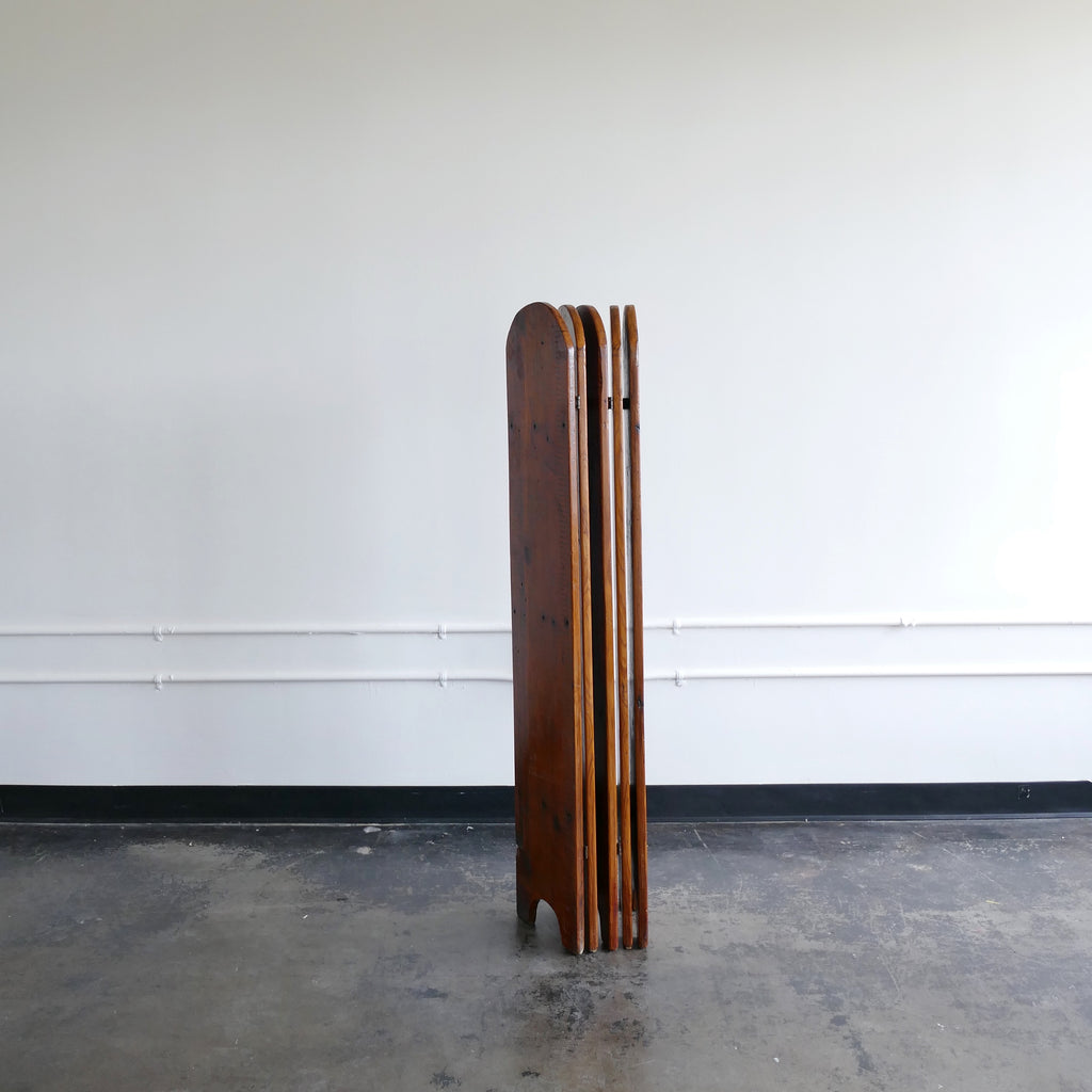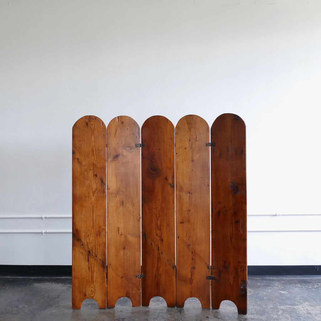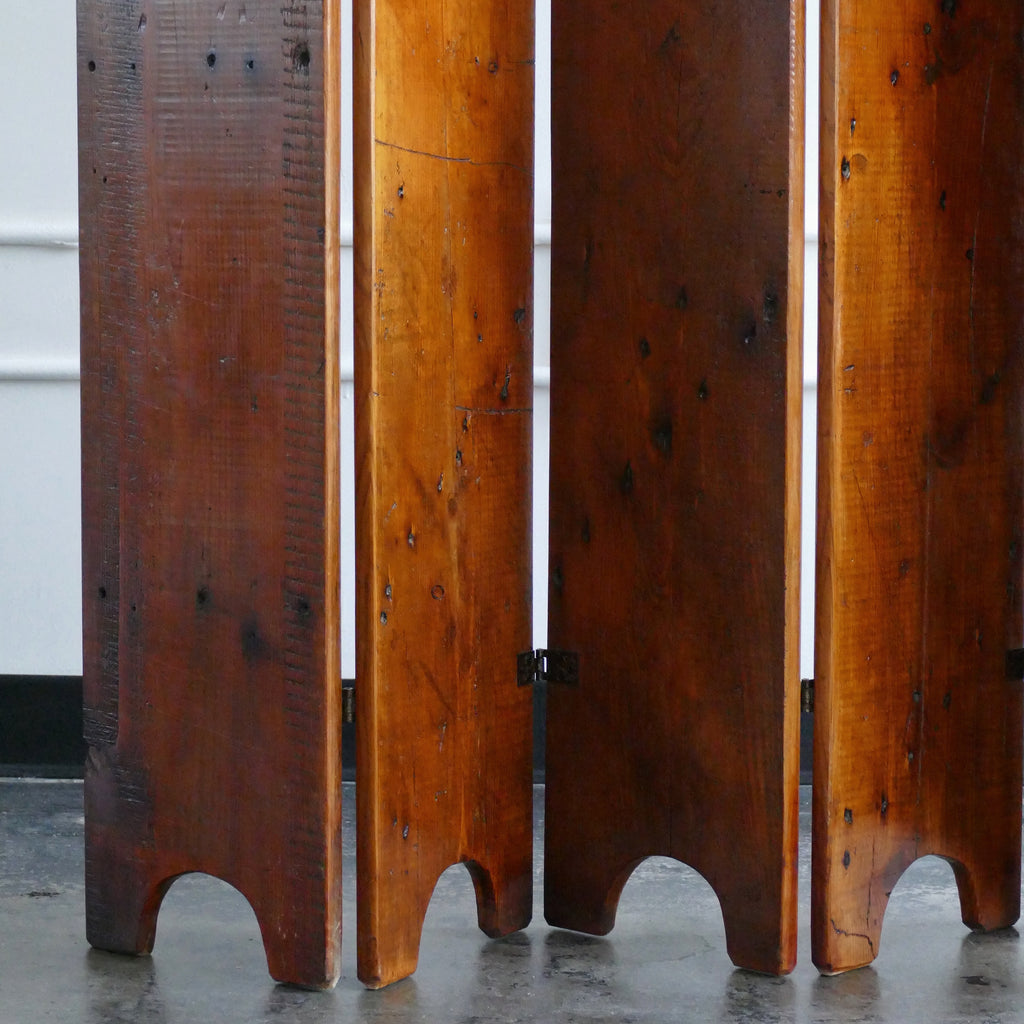 Primitive fir room divider with arched details at feet and top. Lovely patina throughout; excellent vintage condition. Heavy and well constructed.