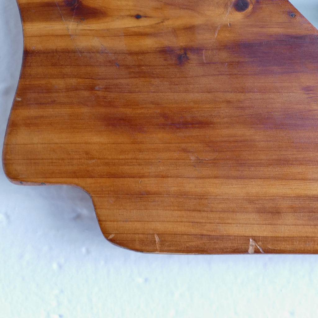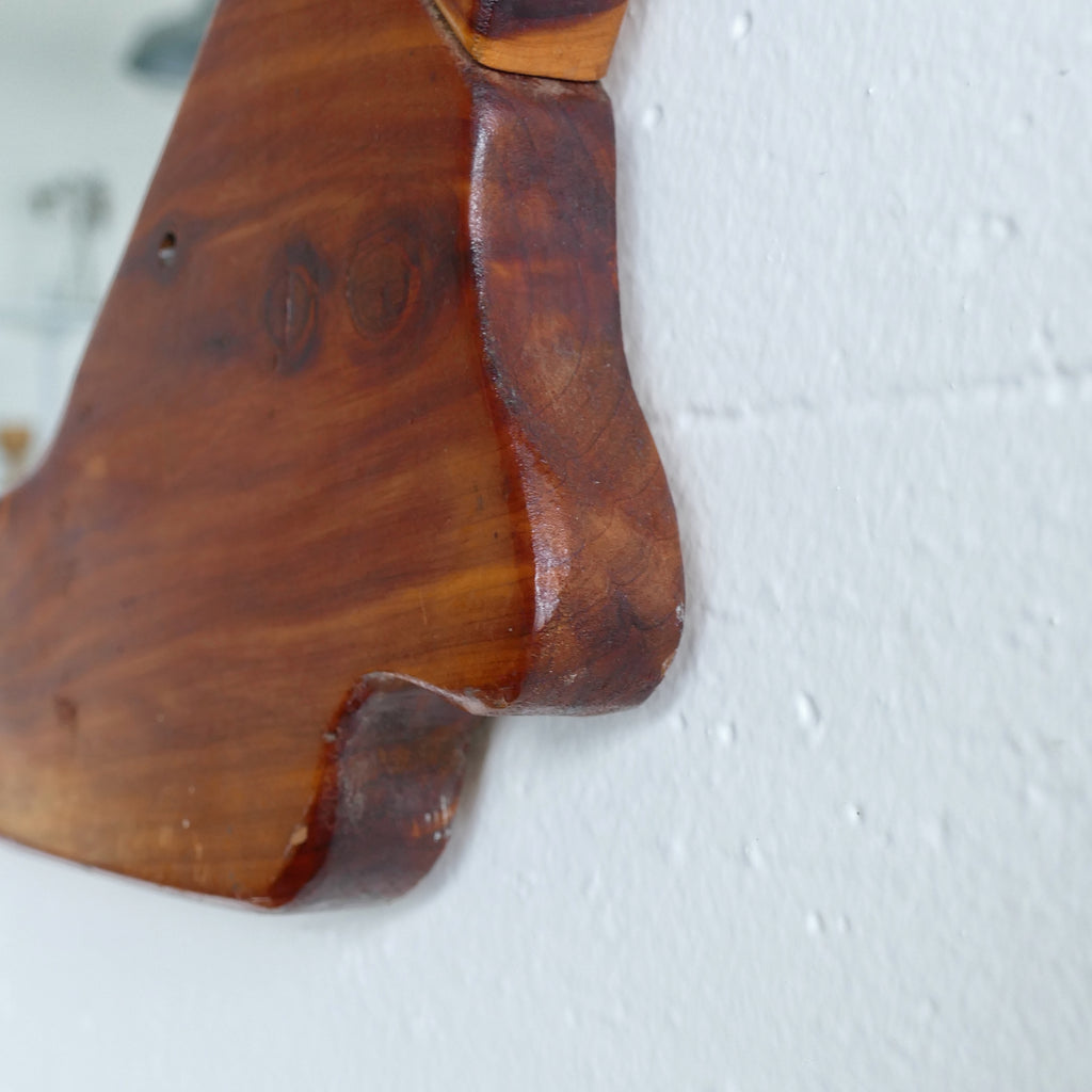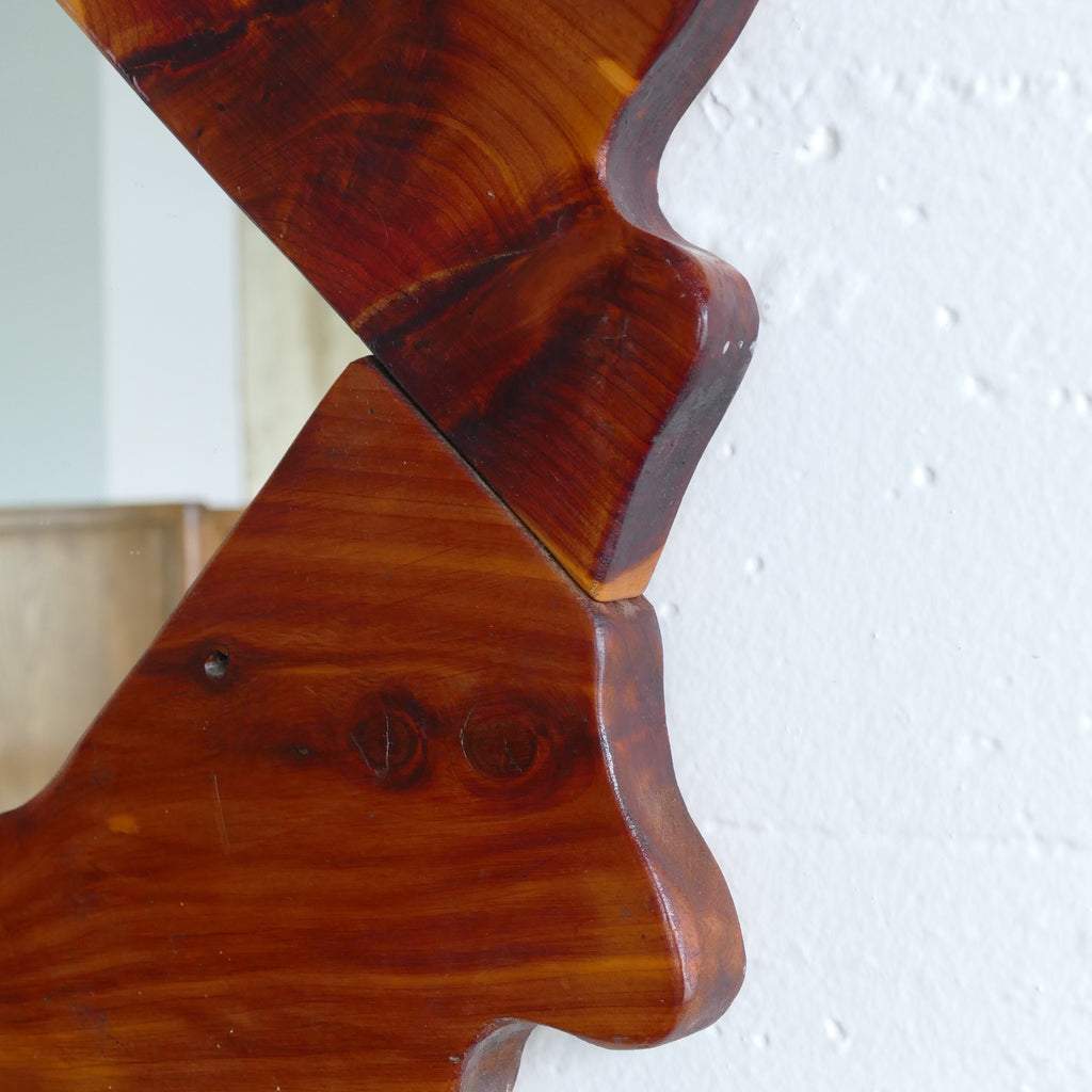 Lovely vintage handcrafted cedar mirror with wavy freeform edges and puzzle notch detail.