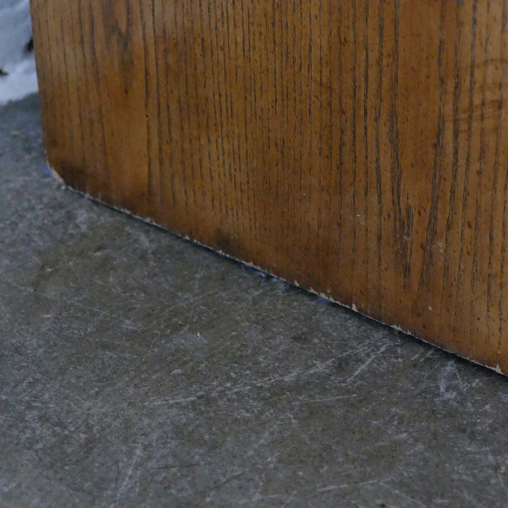Vintage honey oak armoire circa 1980s, by Stanley Furniture. The chonky, opposing horizontal and vertical rounded drawers and doors, and darker inlay make these pieces stand out. We love these small details. Armoire features two bottom exterior drawers, two interior drawers and four interior cubbies.