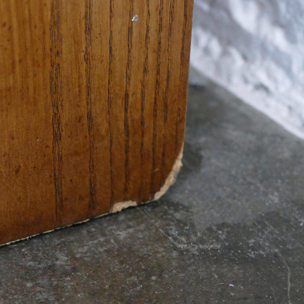 Each piece in this collection does retain some wear; the armoire has light water stains and scratching on the top, and chips around the bottom corners and edges, as shown. Overall good vintage condition with lots of life left in it.