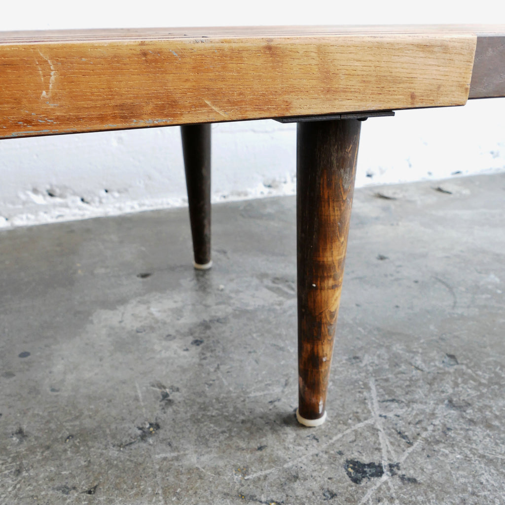 Expandable slatted bench, attributed to John Keal for Brown Saltman. A classic design and well sought-after piece.