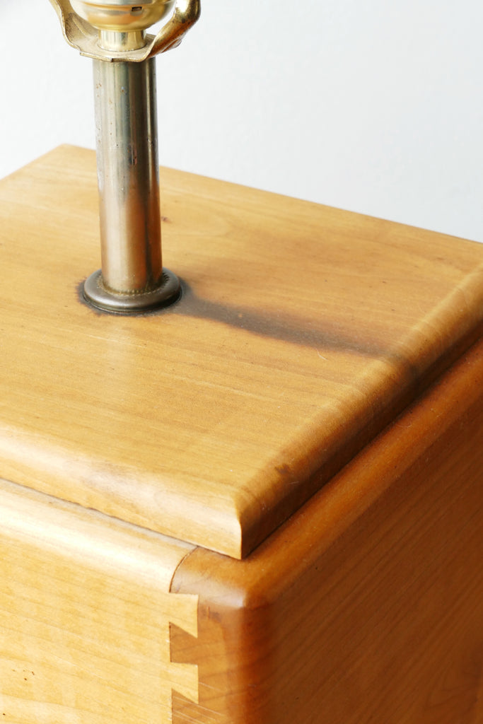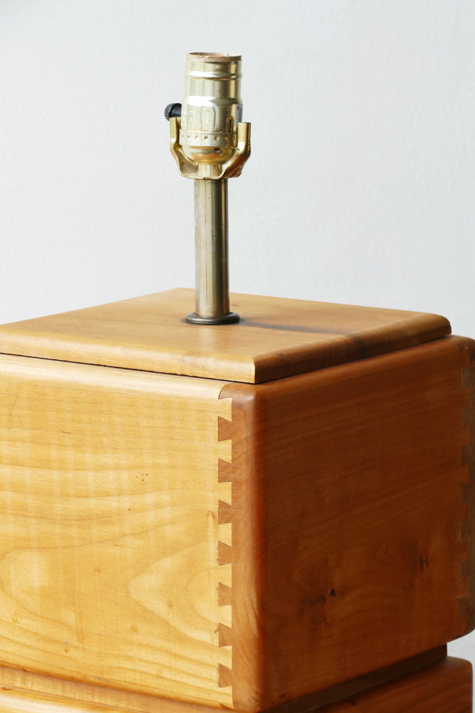 Chunky vintage stacked block lamp. This piece looks handmade and vintage, with newer hardware. Would look great with a square or rectangular shade.