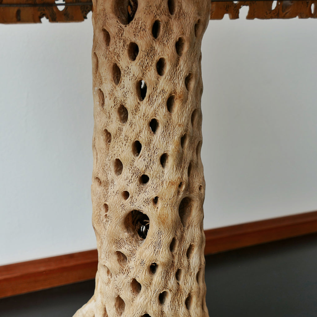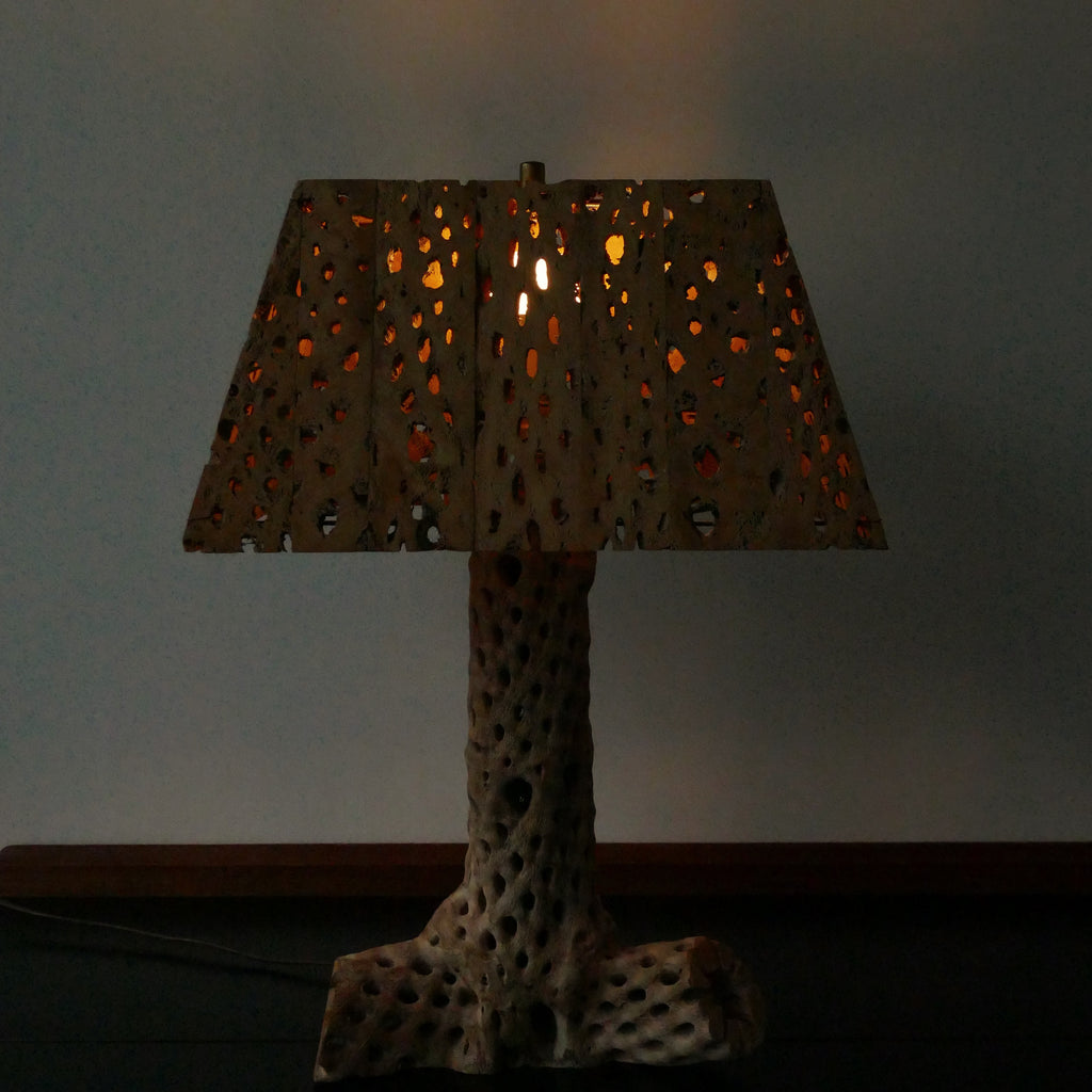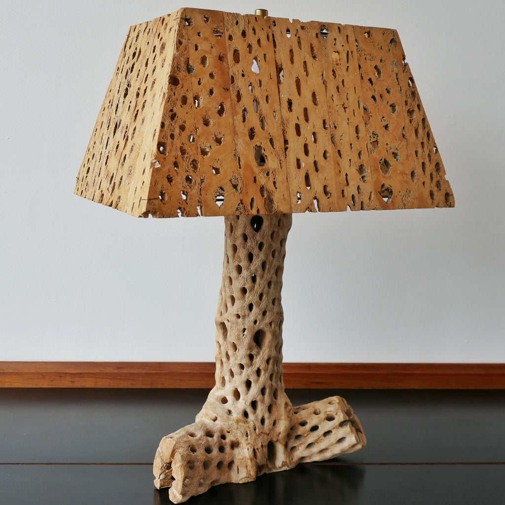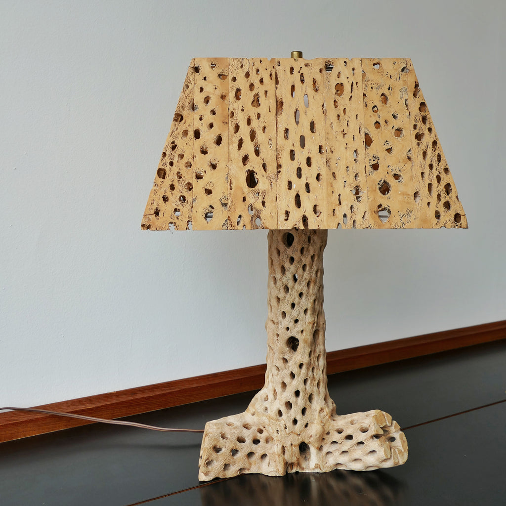 Incredible cholla wood table lamp with rarely seen matching cholla wood shade. Excellent condition, no damage.