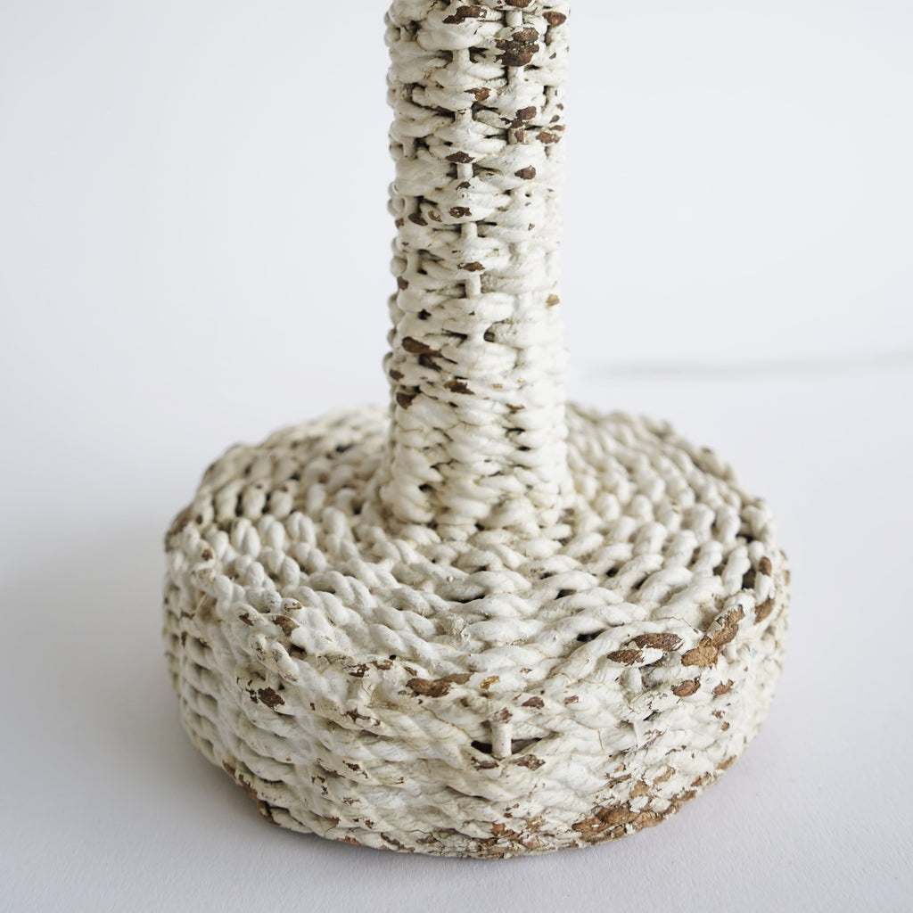 Vintage painted wicker lamp with adorable teak slatted clip-on shade that adds a modern touch. Newer cord.