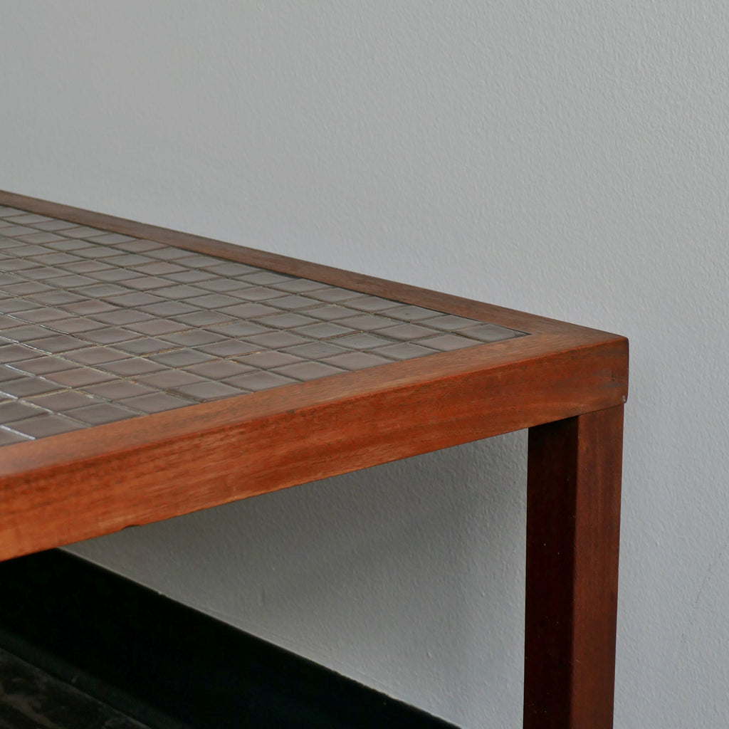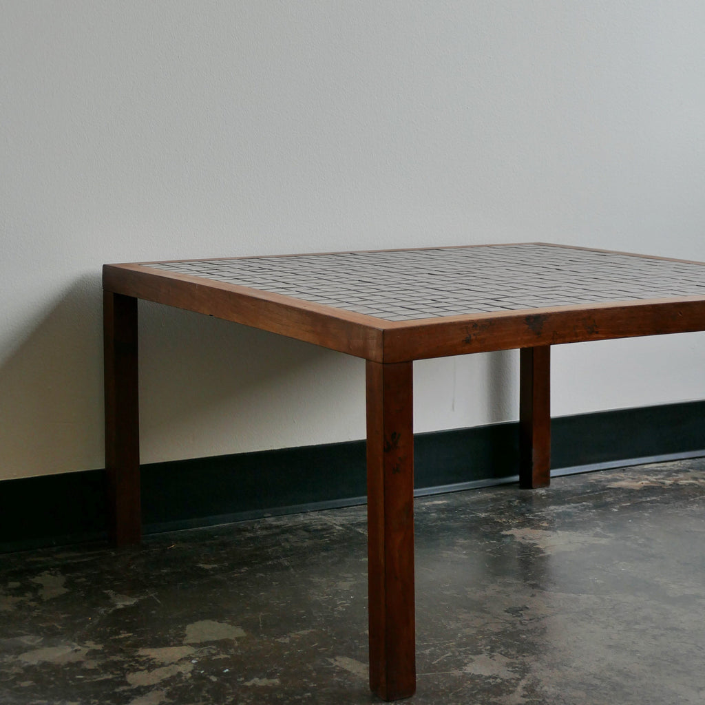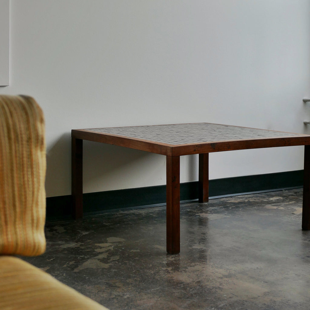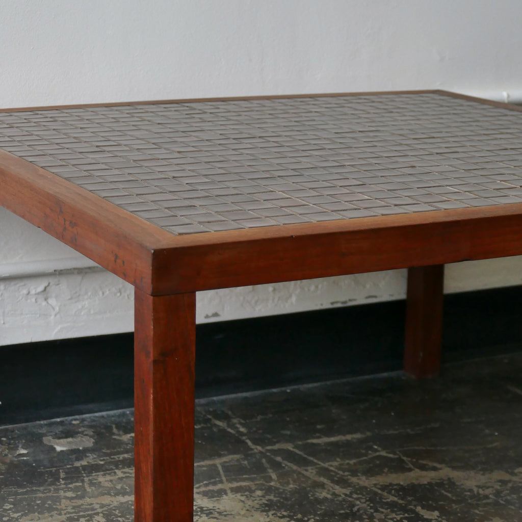 Vintage brown tiled square coffee table designed and made by Jane & Gordon Marshall for Martz Studios, circa 1960s. Overall very good vintage condition. No chips or cracks in tile. Some stains on edges and one area of wear on one leg. All shown in images.