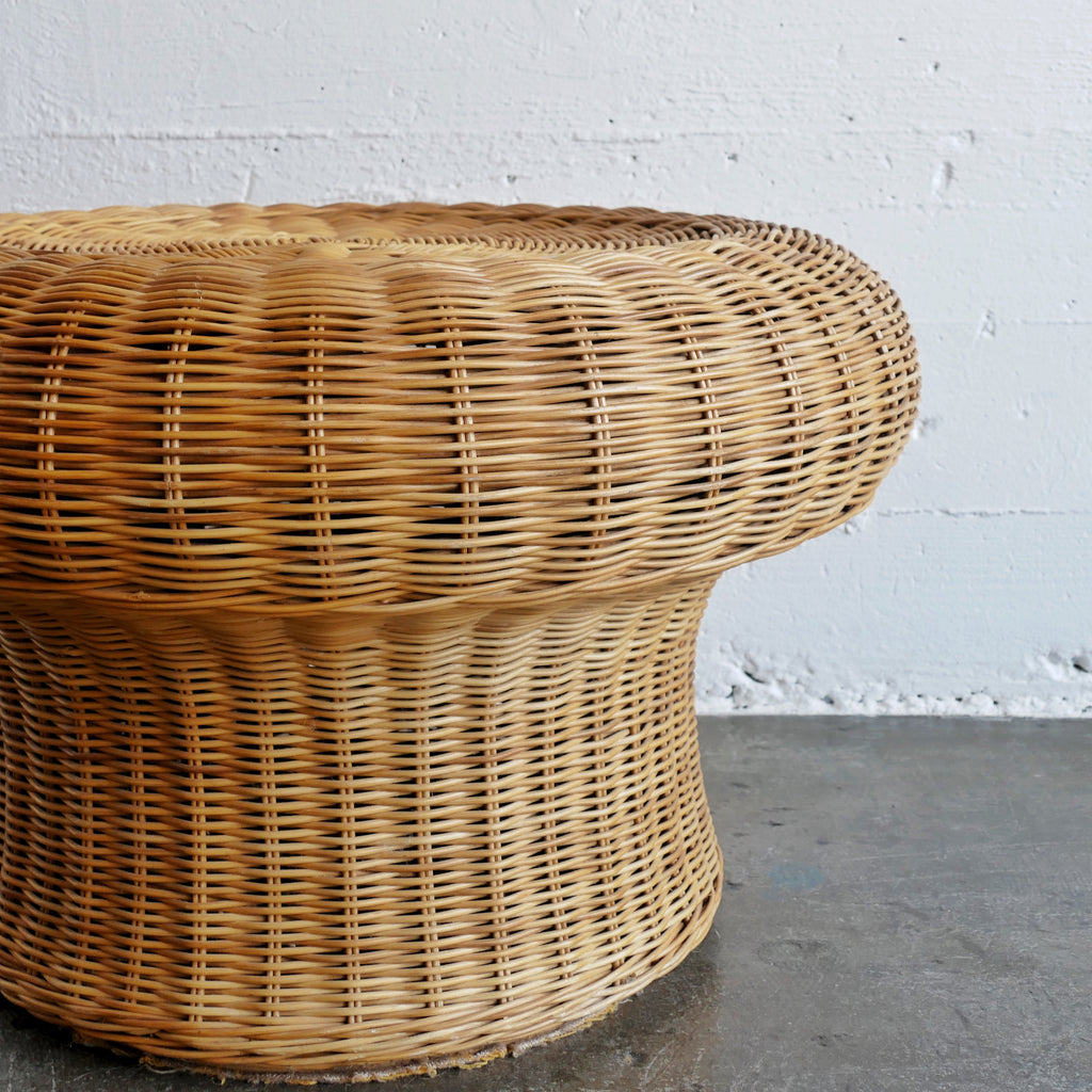 Large-sized wicker mushroom in excellent vintage condition. Could be used a seat, side or coffee table. Little to no breaks in wicker.