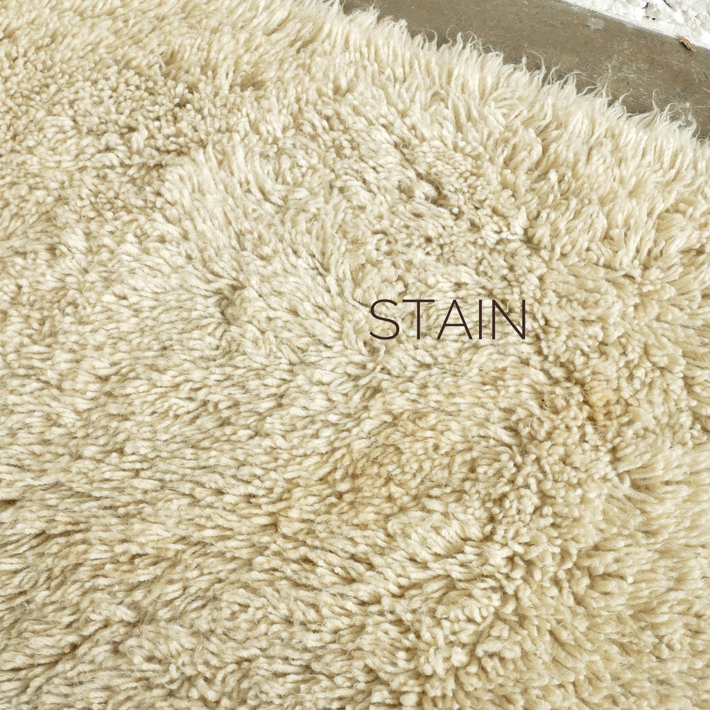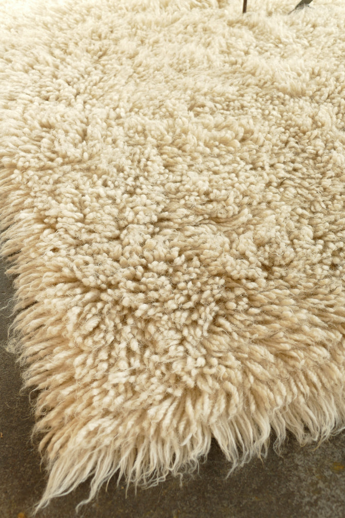 Vintage cream 100% wool Flokati style rug. The fiber used for this rug is slightly thicker than other traditional Flokati's; giving it an extra plush feeling under the feet.
