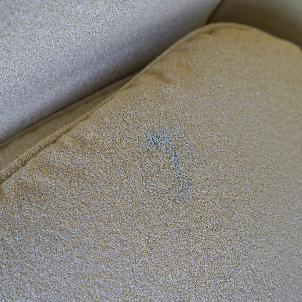 Excellent condition. Age appropriate nicks on legs. Fabric is in overall excellent condition with very minor faint spots on one arm, as shown. One larger spot on backside of cushion, as shown.